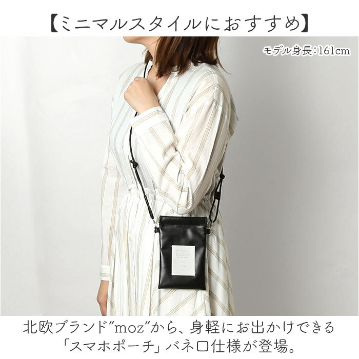 | 商品説明 | ・・【ミニマルスタイルにおすすめ】 ・北欧ブランド”moz”から、身軽にお出かけできる「スマホポーチ」バネ口仕様が登場。 ・【スリム&コンパクトで使い勝手抜群】 ・お出かけ時にサッと持ち出せるサイズ感。スマホがサクッと収納できる縦型タイプ。 ・【両手が空いてストレスフリー】 ・長さ調節可能なショルダーコードを使って斜め掛け。アクティブに動く日も快適。 ・【片手で簡単!ワンタッチ開閉】 ・バネ口金を両サイドから押してオープン。いつでも開け閉めがスムーズ。 ・【必要最低限のアイテムをIN】 ・コインケースやカードケース、鍵などを入れてもOK。貴重員をひとまとめに。 ・【メインにもサブにも!使い方自在】 ・ちょっとそこまではこれ1つで、旅行などのサブバッグにも。ポケットのない洋服でも安心◎ ・【落ち着きのある大人可愛いデザイン】 ・手触り滑らかな合皮素材に、フロントタグがアクセント。シンプルでコーデを選ばず活躍。 |