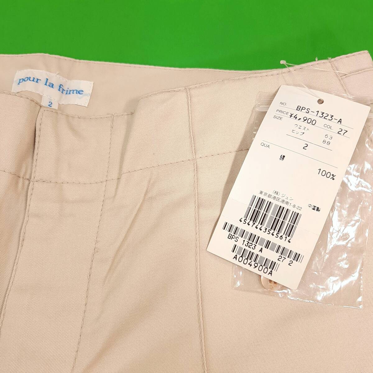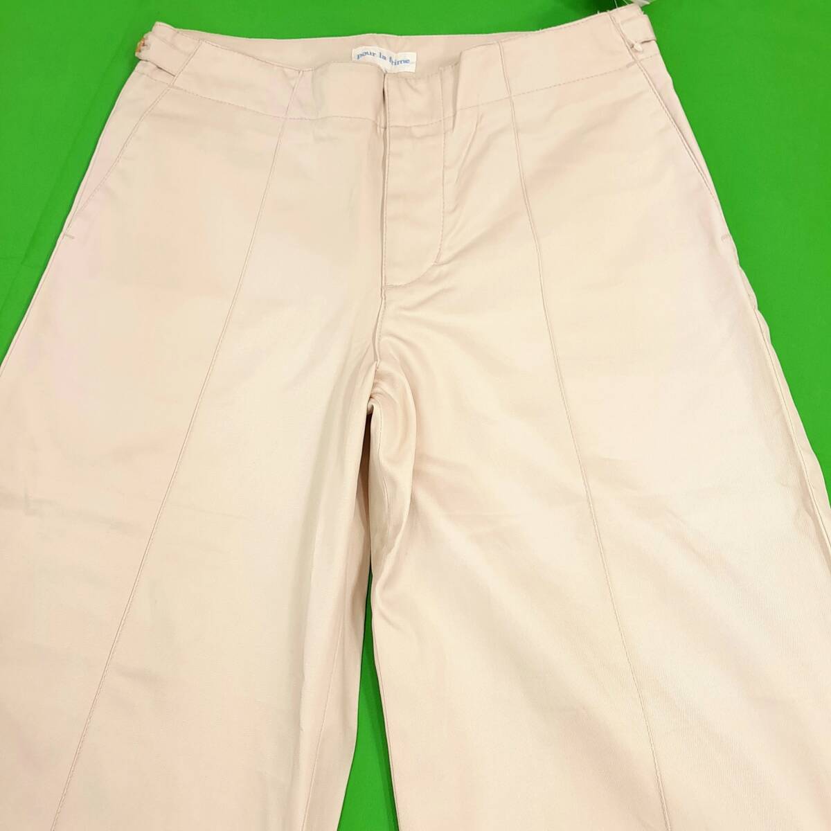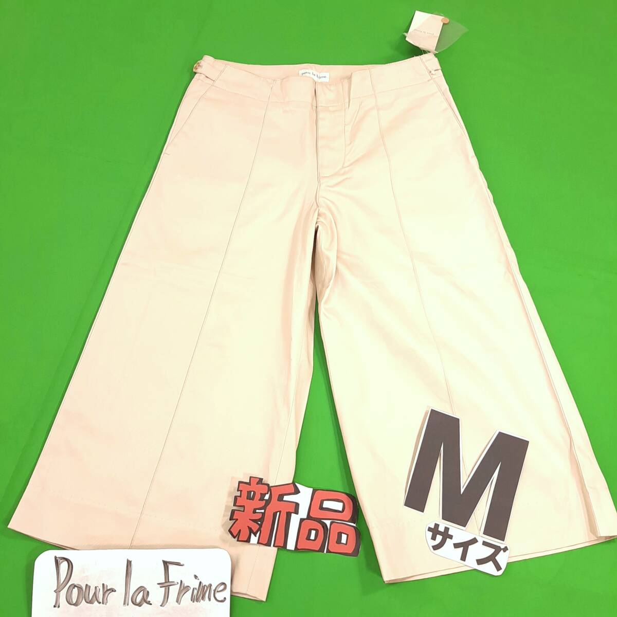v8 新品4900円税 Pour la frime★送料無料★綿100% クロップド丈 ワイドパンツ 半端丈パンツ★Mサイズ ベージュ色 センタープレス