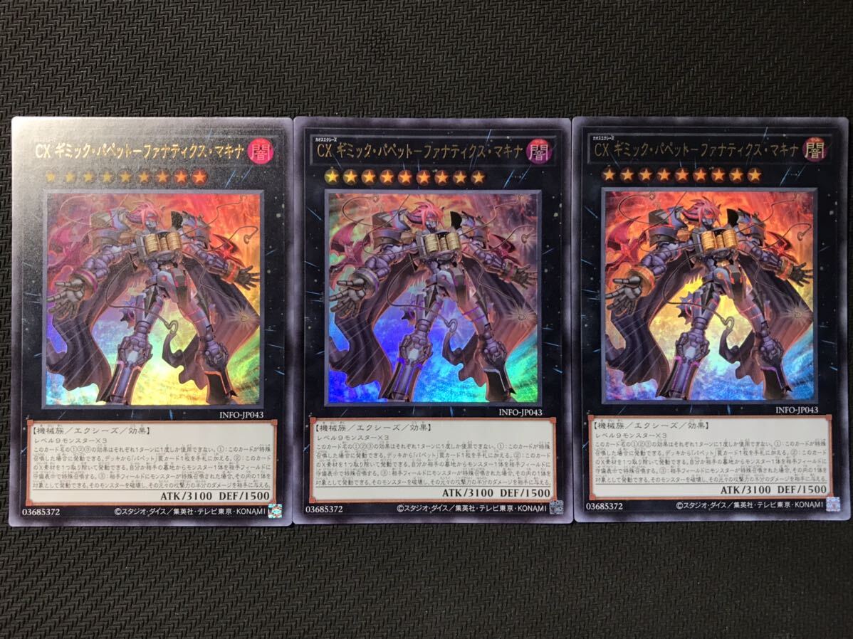 出品物『CX ギミック・パペット-ファナティクス・マキナ(INFO-JP043)ウルトラレア3枚セット』です。