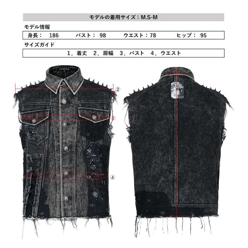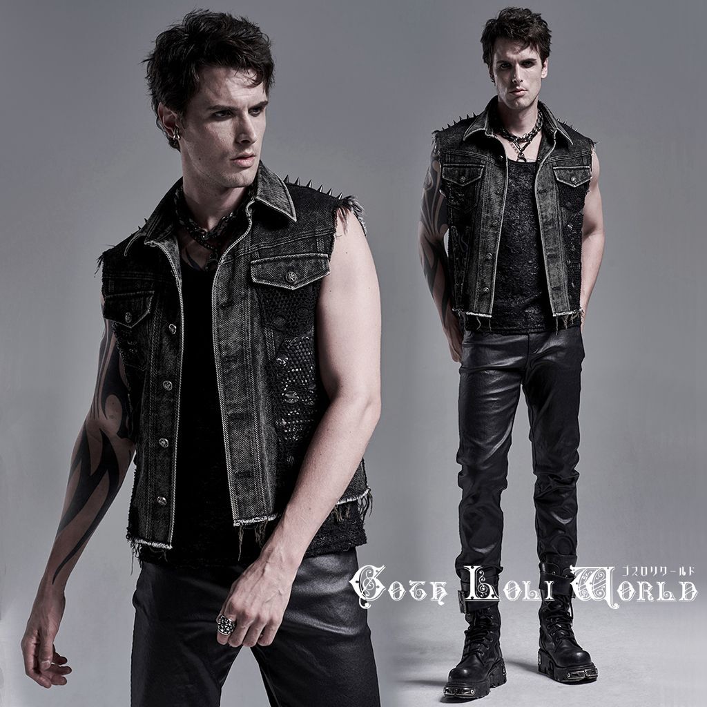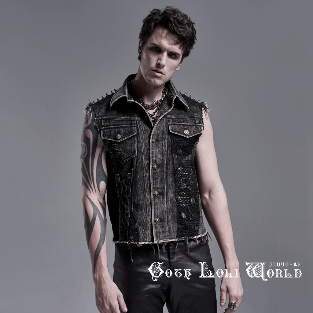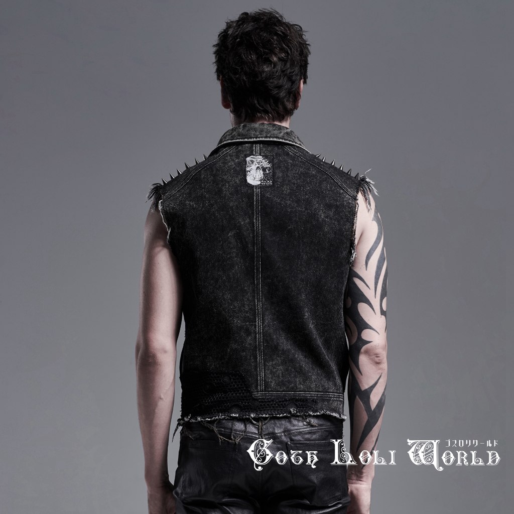 WY-1272MJM-BK-S デカダンスダメージ風デニム生地パンク ベスト ゴスロリワールド ゴシック パンク ロック ロリィタ ビジュアル系 V系