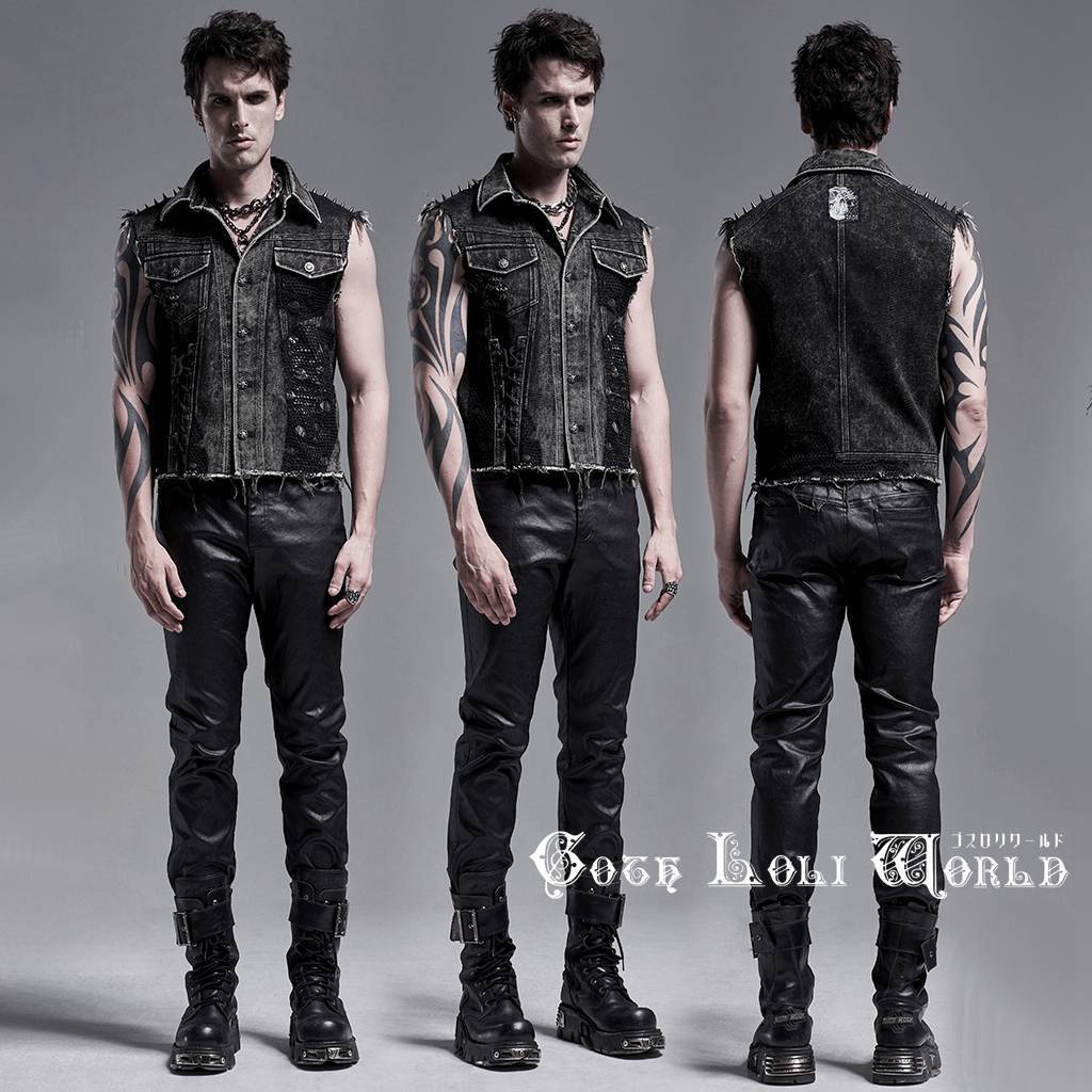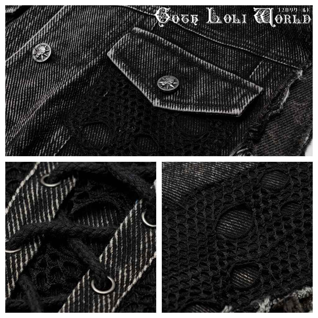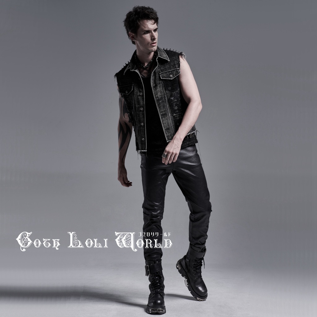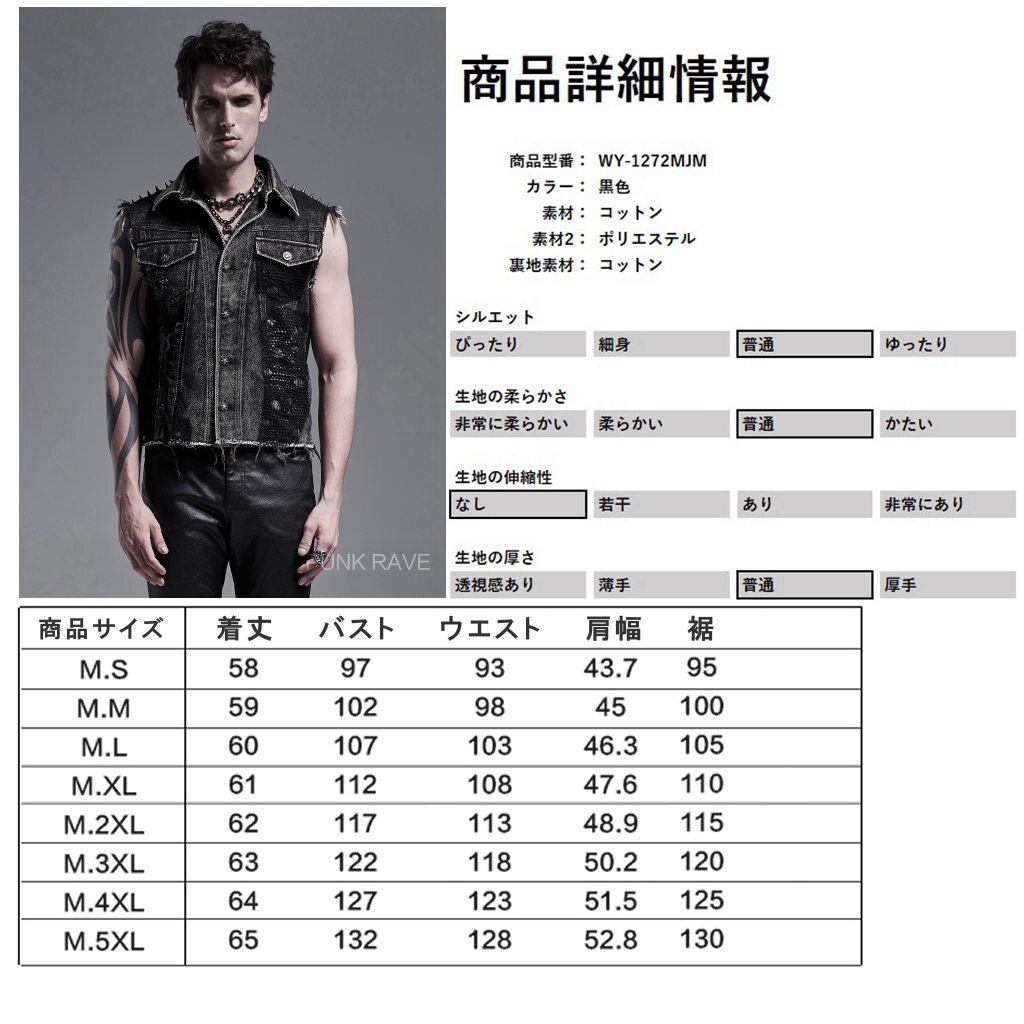 WY-1272MJM-BK-S デカダンスダメージ風デニム生地パンク ベスト ゴスロリワールド ゴシック パンク ロック ロリィタ ビジュアル系 V系