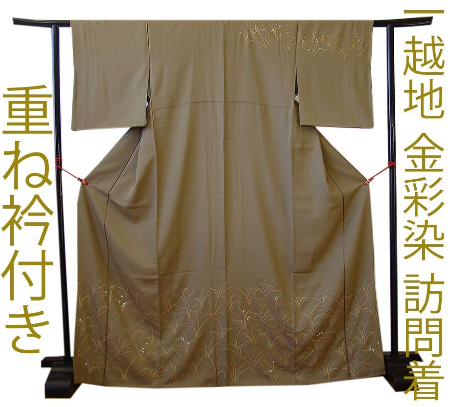 ★美品◆重ね衿付き!帯や小物次第で様々な表情をお愉しみ頂ける逸品! 一越地のフォーマルシーンに映える金彩染の上品な訪問着(正絹) L825★ | |