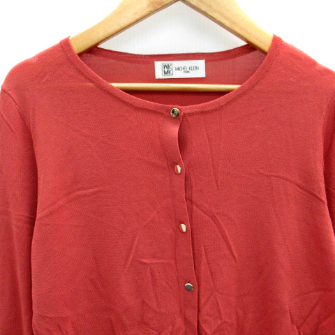 エムケー ミッシェルクラン MK MICHEL KLEIN カーディガン ミドル丈 ラウンドネック 36 S コーラルレッド /SM1 レディース