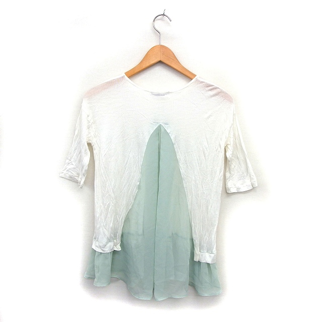 アーバンリサーチ URBAN RESEARCH ブラウス シフォン 透け感 ロングテール ラウンドネック 五分袖 F オフホワイト /NT5 レディース