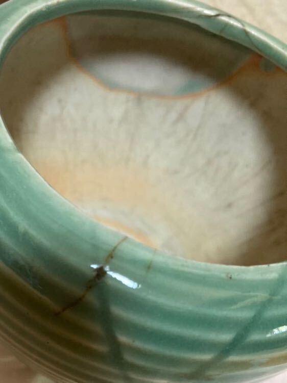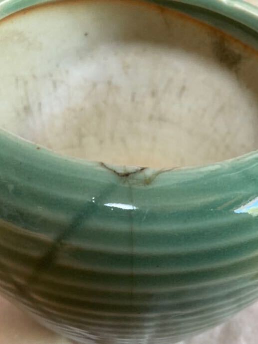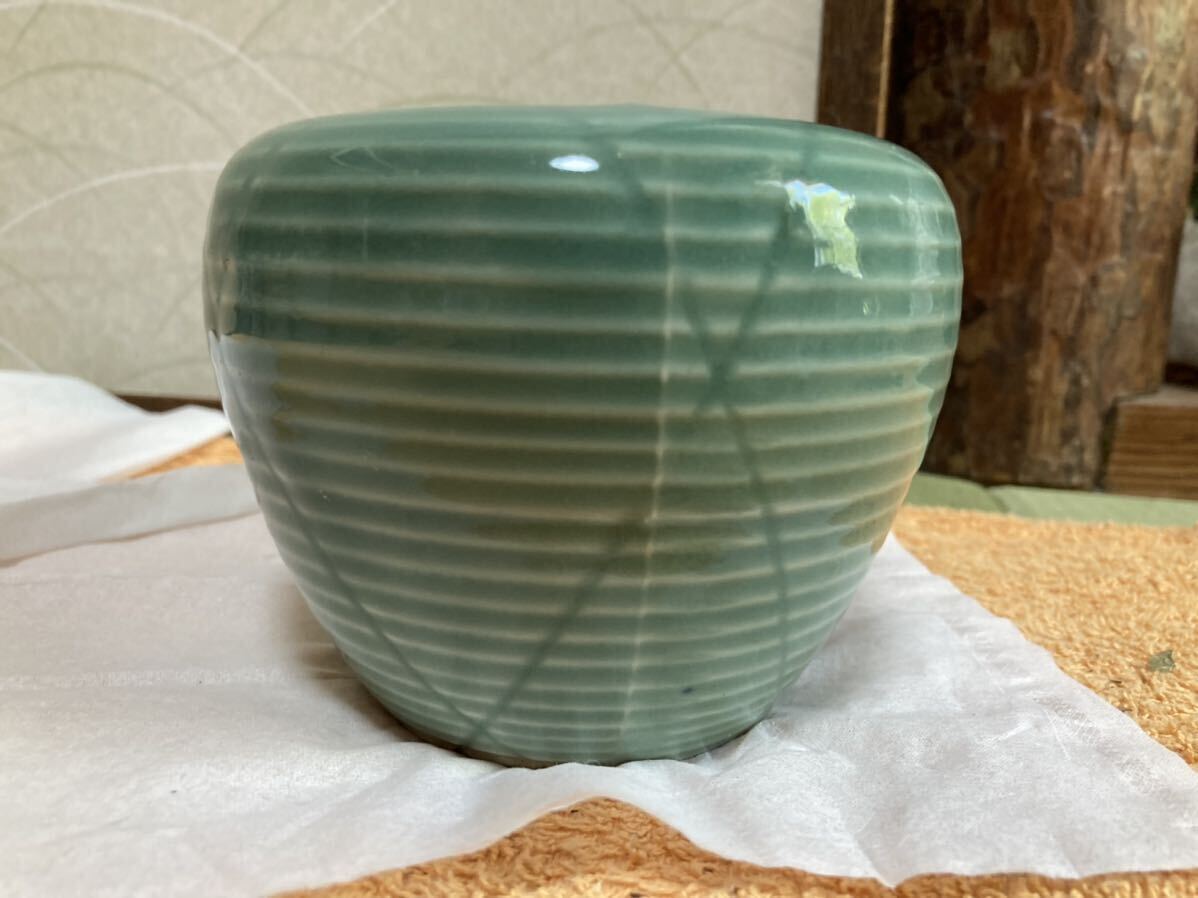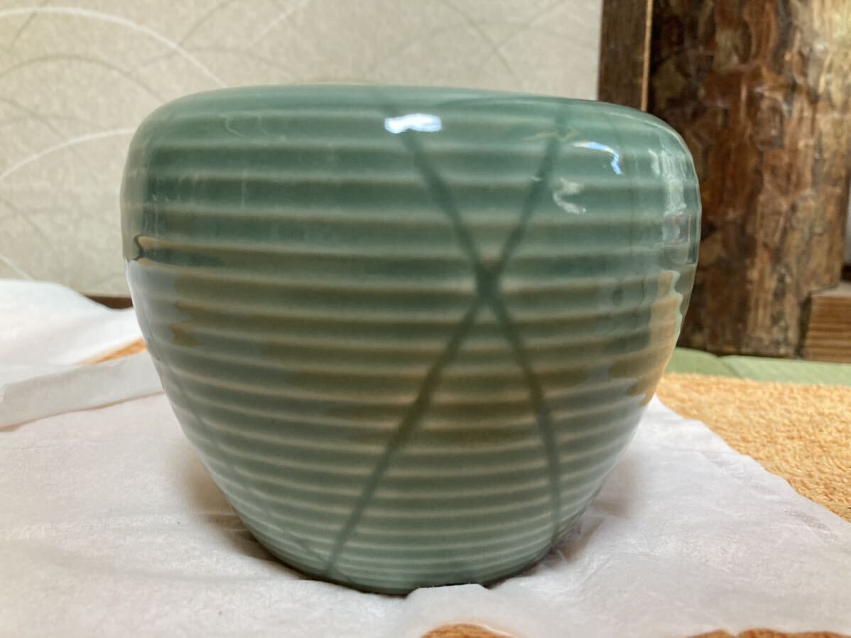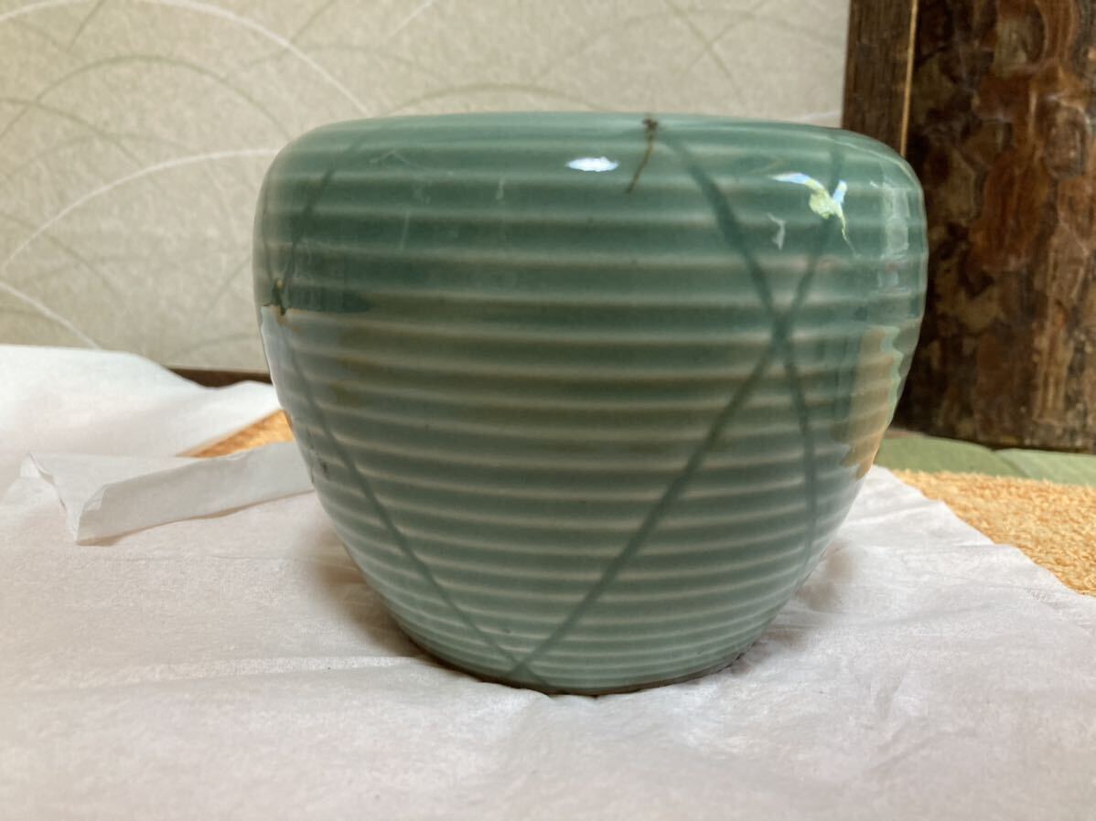 実家では、飾皿として使っていたかと思います。おそらく陶器製の型貞作の小型植木鉢かと思います。飾皿などにいかがでしょうか。画像を載せるのに枚数が限られていますので、画像には上がってはいませんが、他の所にもヒビや汚れがあります。画像の通りですが、ヒビや汚れがありますが、他の所にもカケやヒビ、汚れがあった場合はご了承ください。