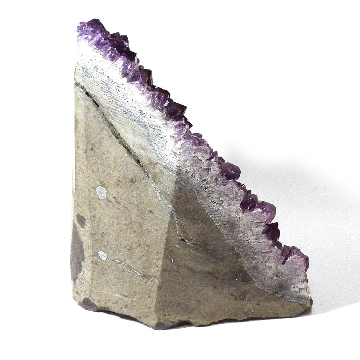 ウルグアイ産のアメジストクラスターです。良質なアメジストの証である深い紫の色がしっかりと入っています。底面を平らにカットしておりますので据わりが良く、ドームの様にそのまま置いて頂けます。