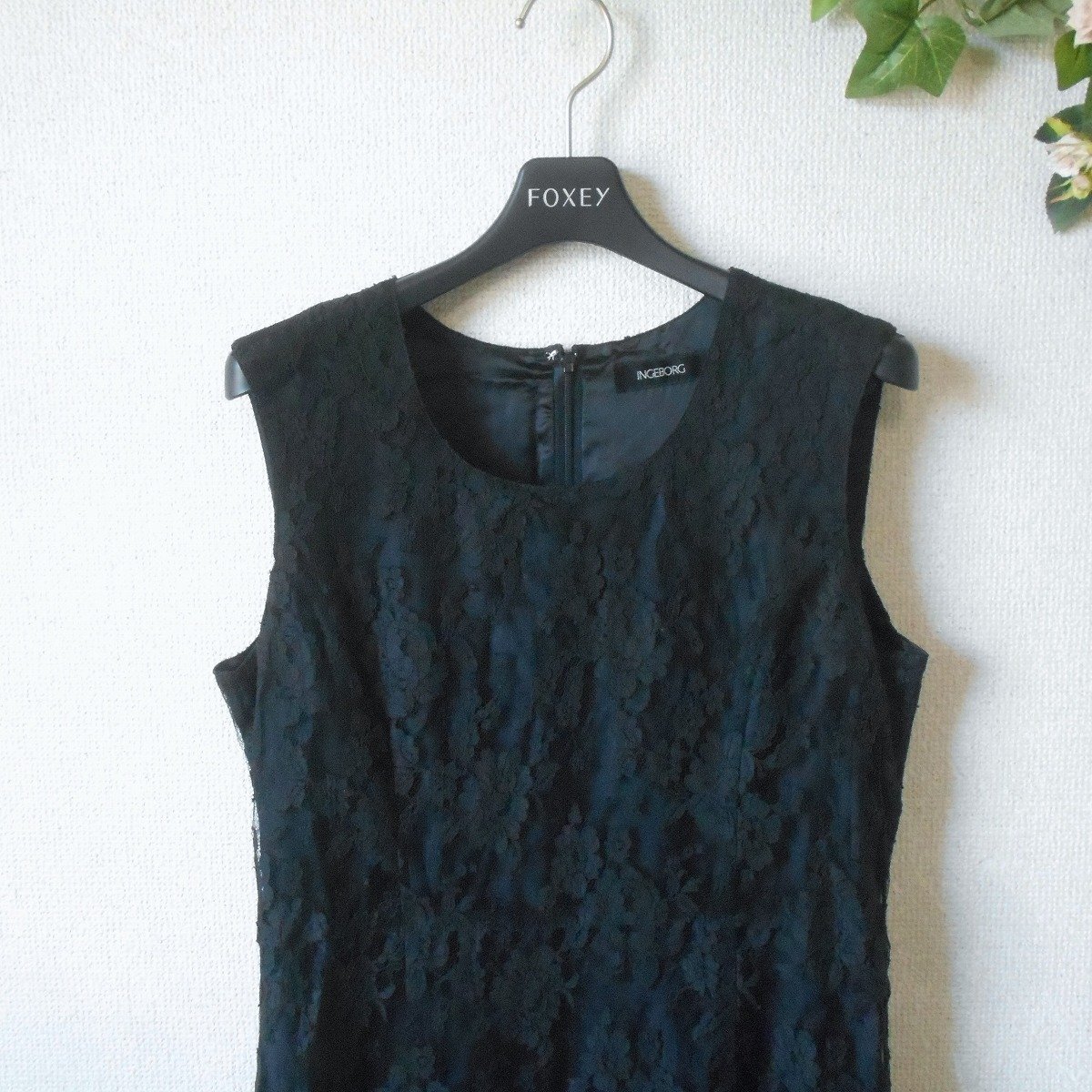 【ポイント】インゲボルグのノースリーブワンピースになります。お色は黒色で、総レース使用の夏を中心に着ていただけるお品です。ノースリーブのロング丈でとっても素敵なデザインです。