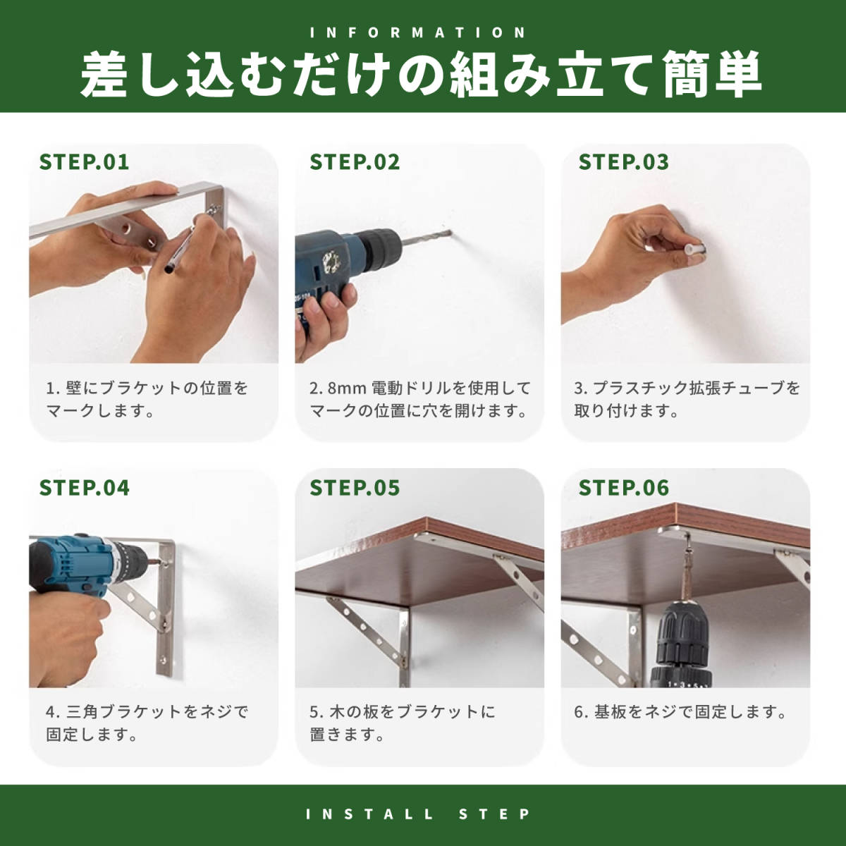 ・キッチンやリビング、ガレージの壁に壁掛け棚を作れる棚受け金具セット
