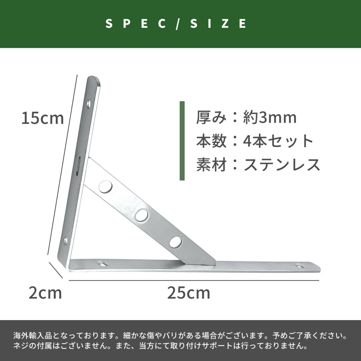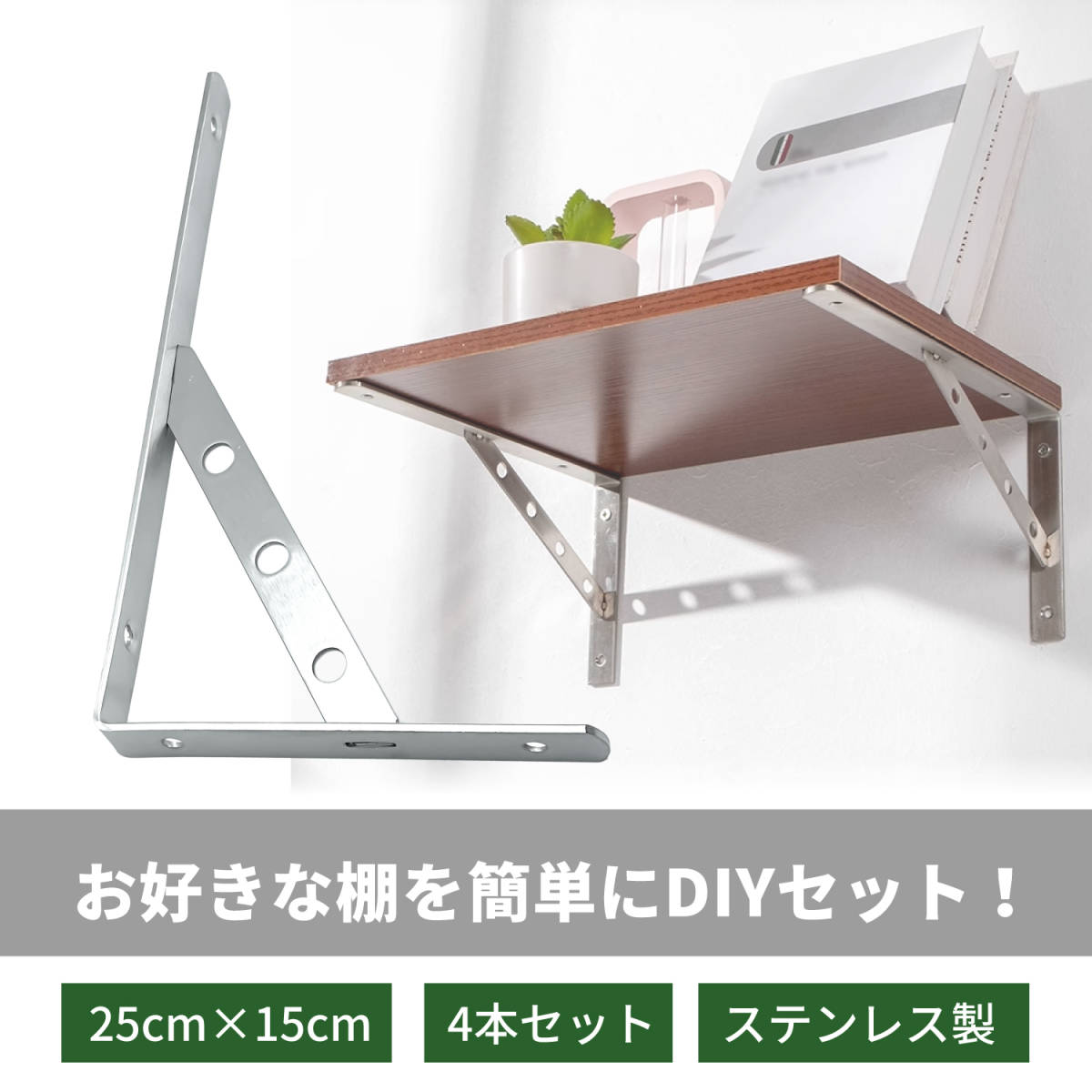 棚受け金具 ブラケット ウォールシェルフ ラック 壁掛け 棚うけ 壁 固定 キッチン L字型 ステンレス製 25cm 250mm 2本セット