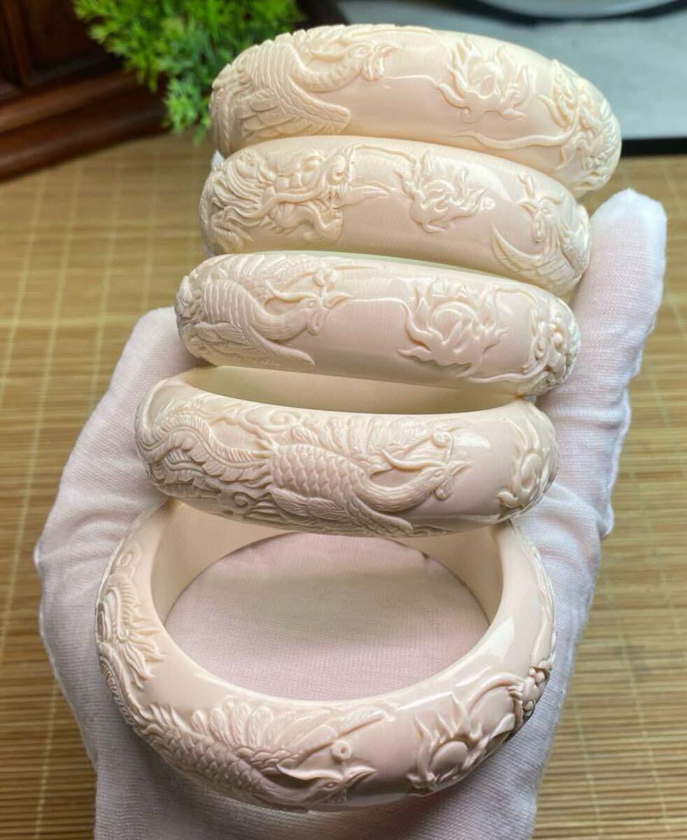 商品名:天然マンモス牙美しい手作り彫刻 1龍鳳貴妃 ブレスレット
