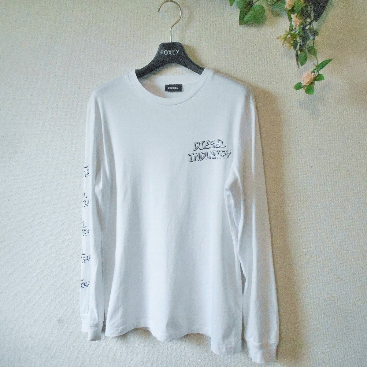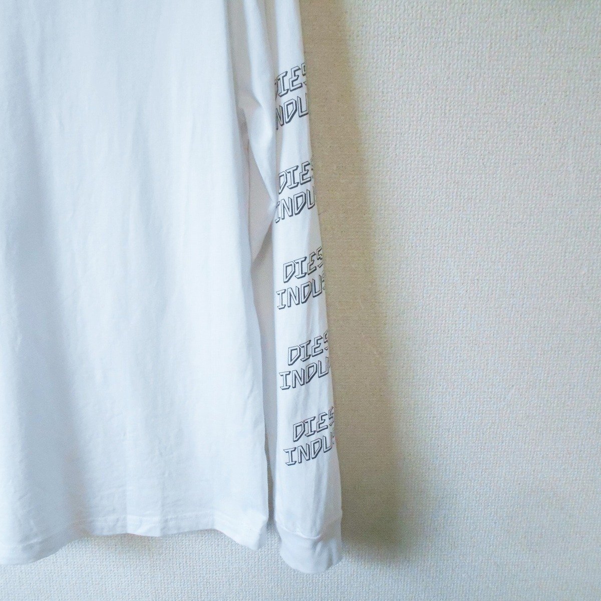 【ポイント】ディーゼルの長袖Tシャツになります。お色は白系のベースカラーで、胸と右袖にはロゴプリントが入った、とってもお洒落なデザインです。