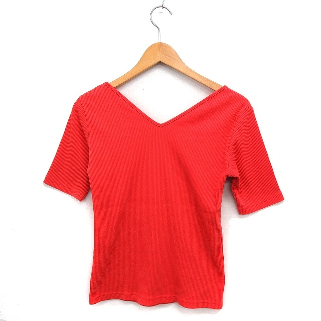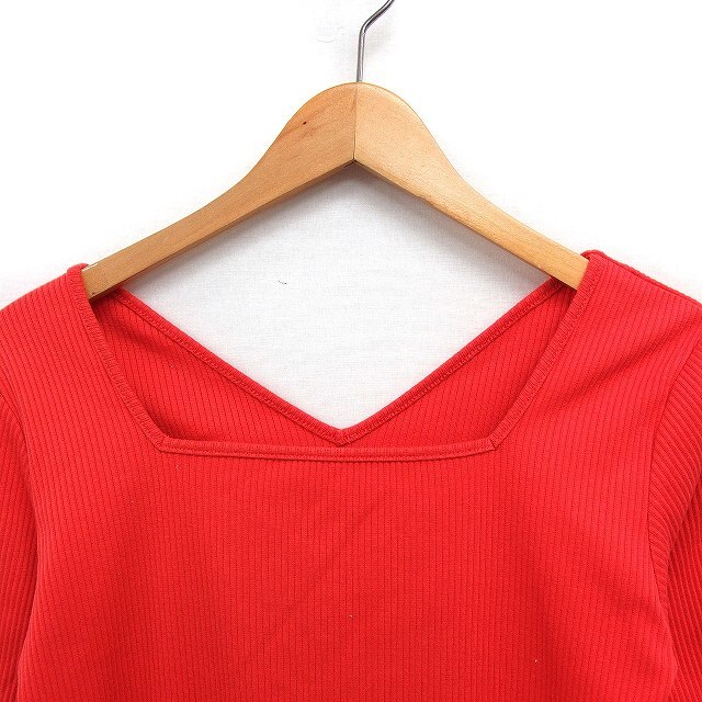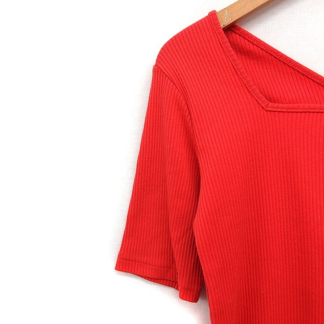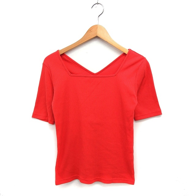 アズールバイマウジー AZUL by moussy リブ カットソー Tシャツ 半袖 スクエアネック 無地 M オレンジ /FT8 レディース