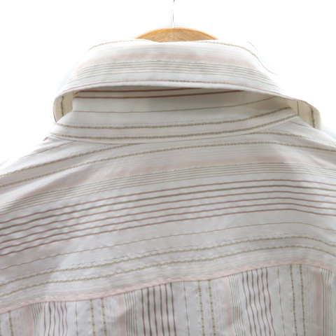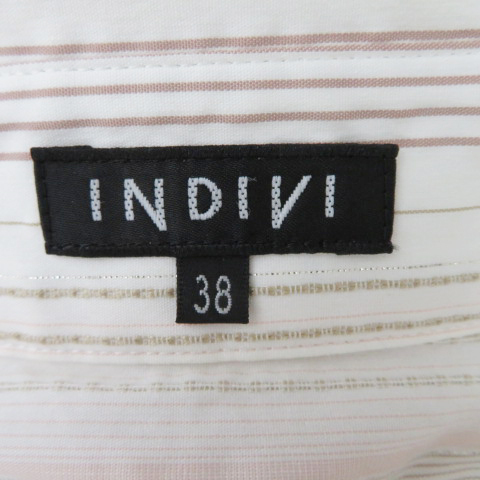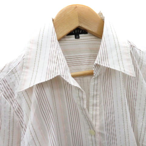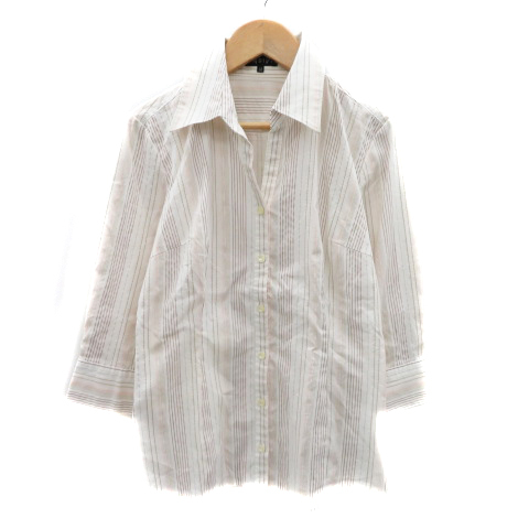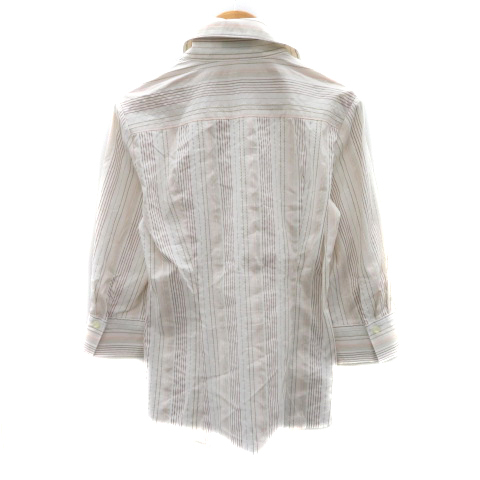 インディヴィ INDIVI シャツ ブラウス 七分袖 スキッパーカラー ストライプ柄 38 M マルチカラー 白 ホワイト /YK44 ■MO レディース