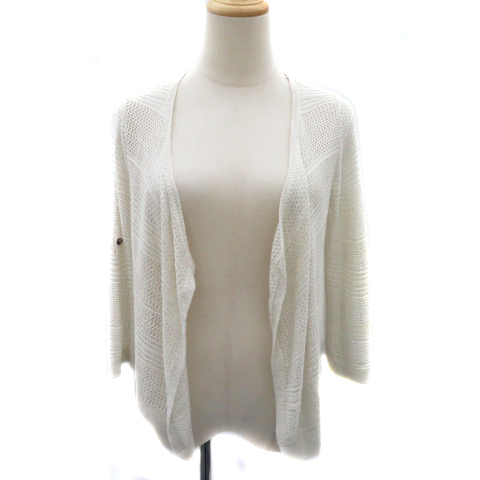 ルスーク Le souk カーディガン ショート丈 前開き 透かし編み 38 M オフホワイト /YK31 レディース