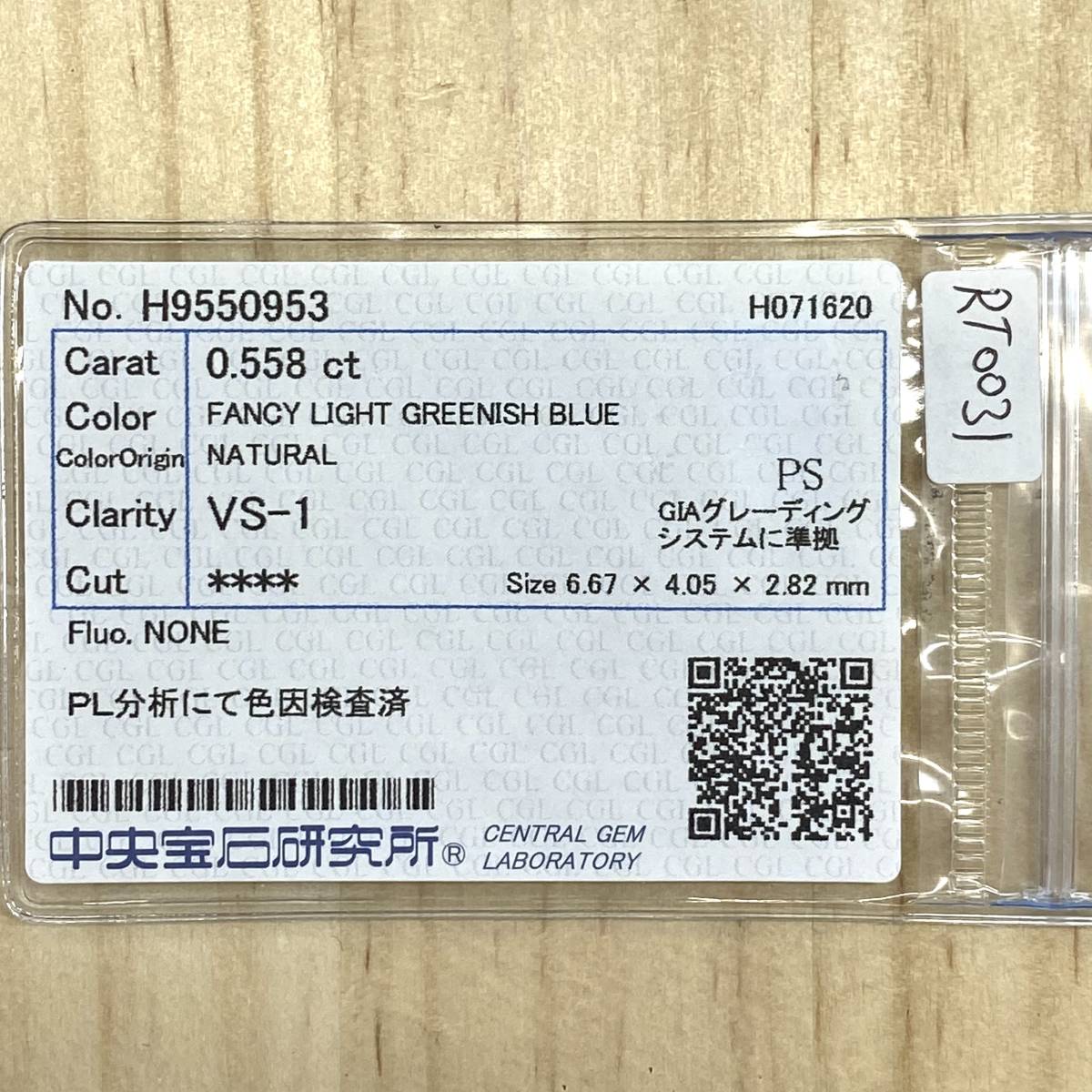 FANCY LIGHT GREENISH BLUE 0.558ct PS/RT0031/CGL