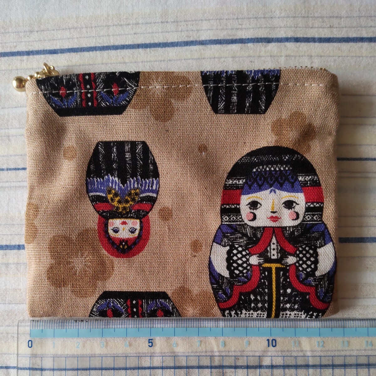 マトリョーシカ柄生地で作ったファスナーポーチです。