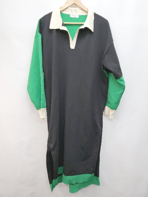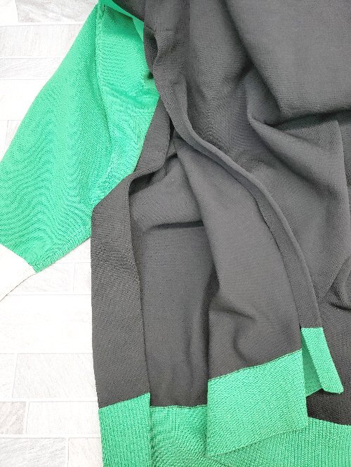 ◇ PAGEBOY ページボーイ スキッパー ニット 長袖 膝下 ワンピース サイズF グリーン ブラック レディース P