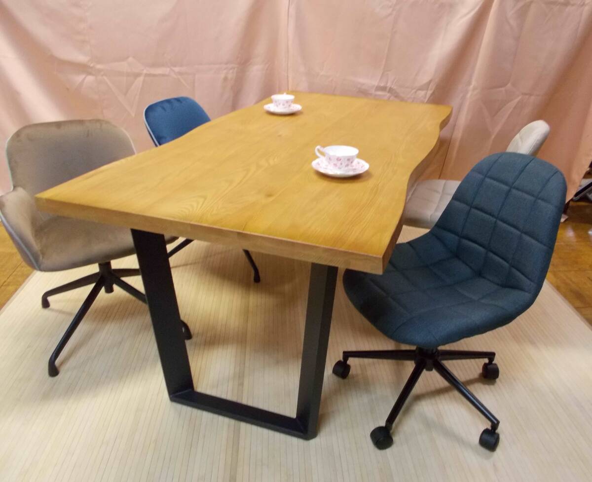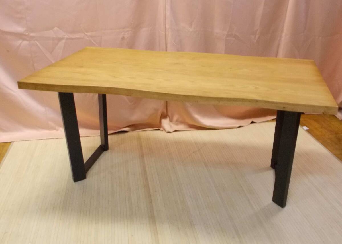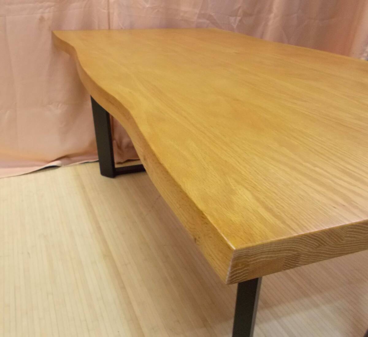 テーブル  天板はオーク材ムク、熱、キズに強いウレタン塗装、脚はスチール製 粉体塗装