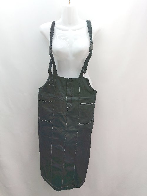 ◇ merlot サロペットスカート ステッチ ジップフライ バックル ロング丈 ワンピース 表記なし ブラック レディース E