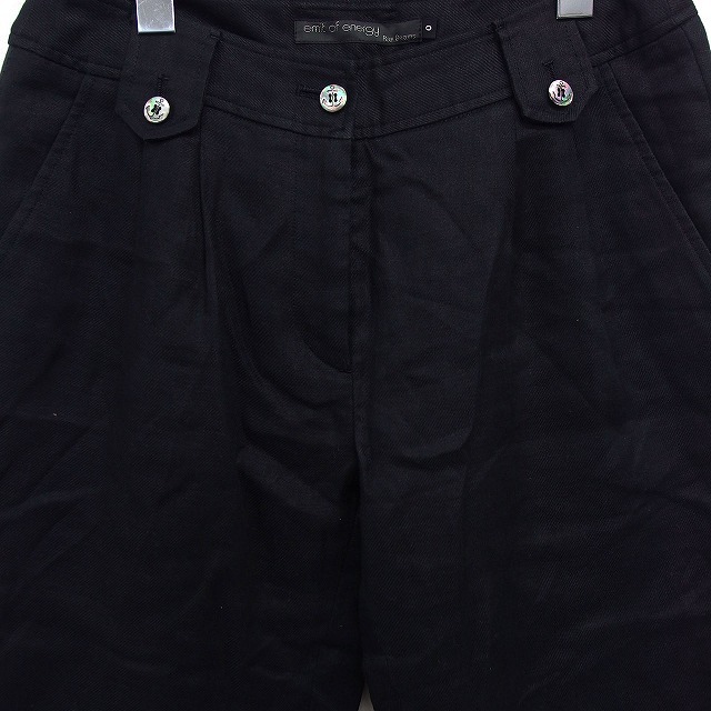 イミット オブ エナジー emit of energy Ray Beams クロップド パンツ タック 無地 リネン 麻 0 ブラック 黒 /FT3 レディース