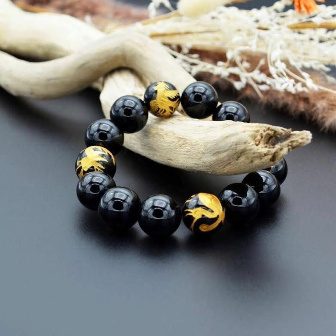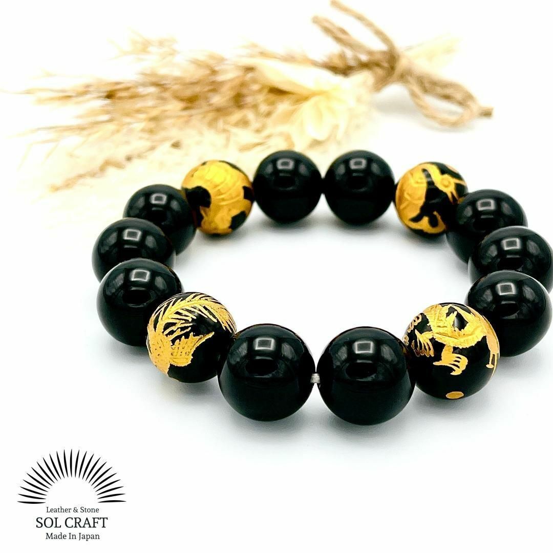 四神 オニキス 金 14mm ブレスレット 金彫り 手彫り 彫刻 パワーストーン レディース メンズ ユニセックス 新品未使用 送料無料 匿名配送