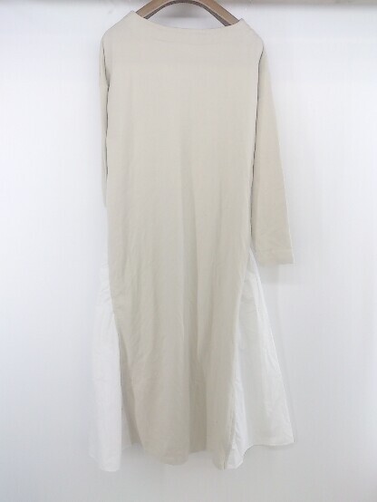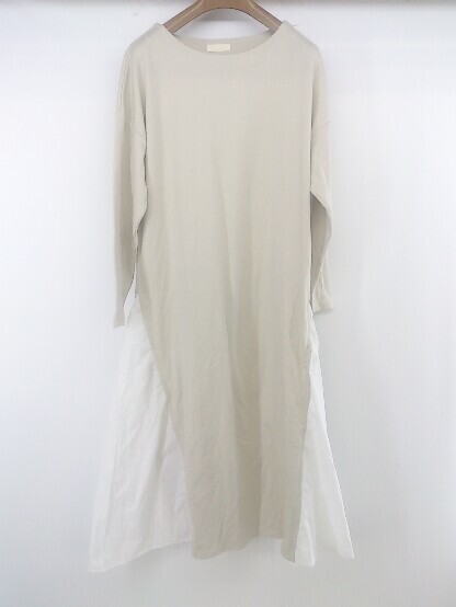 ◇ earth music&ecology 切り替え 長袖 膝下丈 ワンピース サイズF グレーベージュ ホワイト系 レディース E