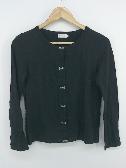 ◇ Bon mercerie ボン メルスリー anatelier リボン ラインストーン 長袖 カーディガン サイズ38 ブラック レディース P