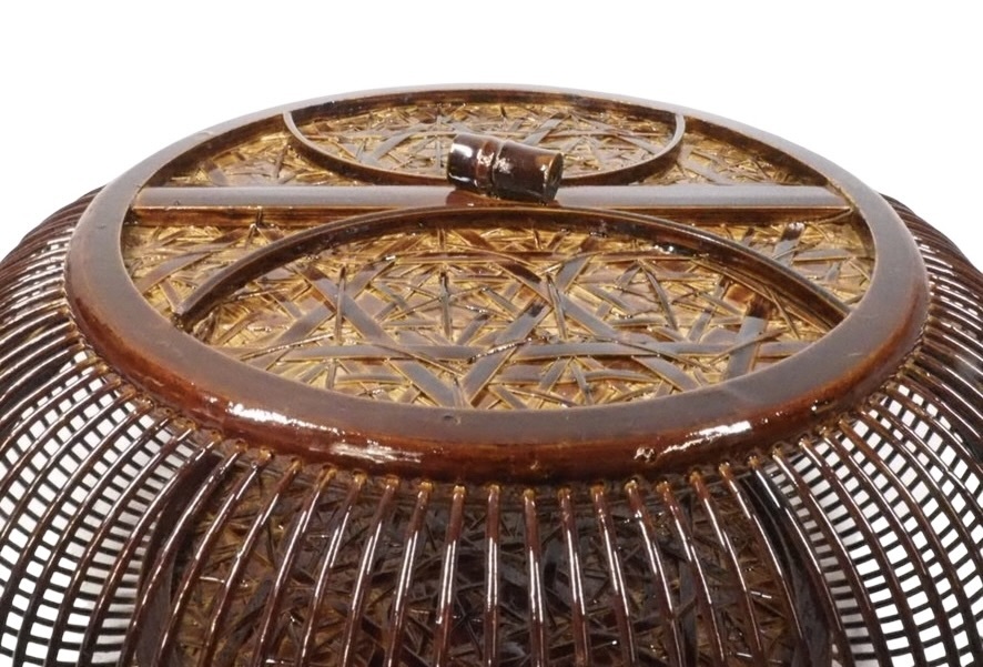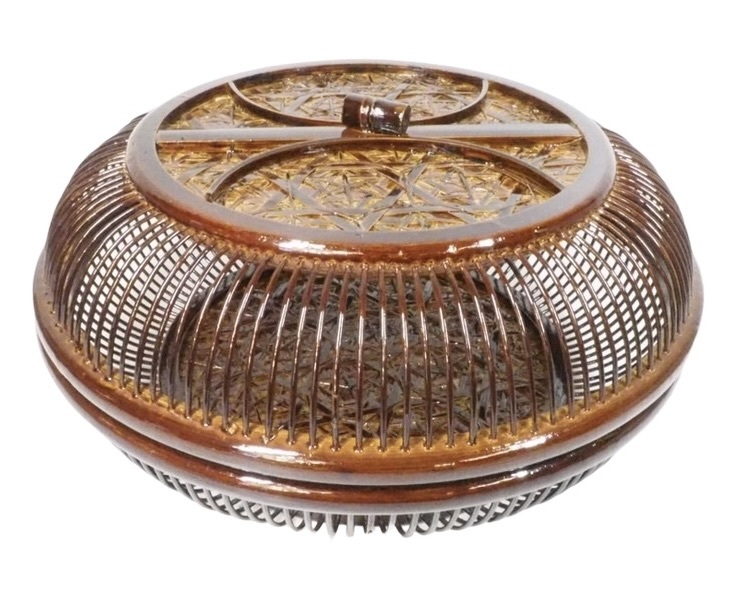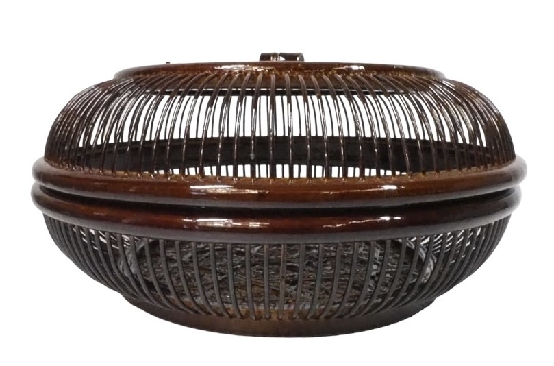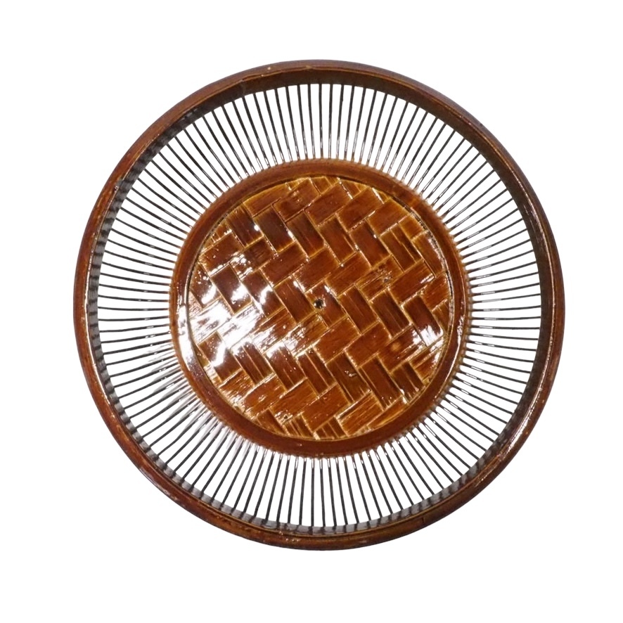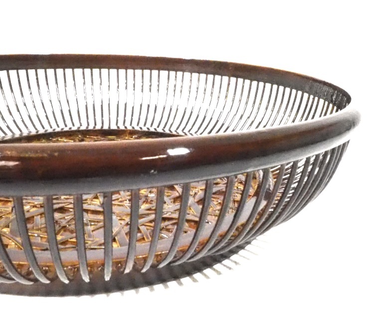 美品!竹工芸品 籃胎漆器 竹製食籠 菓子器 1990年代 SMG606