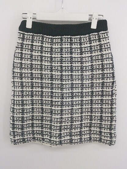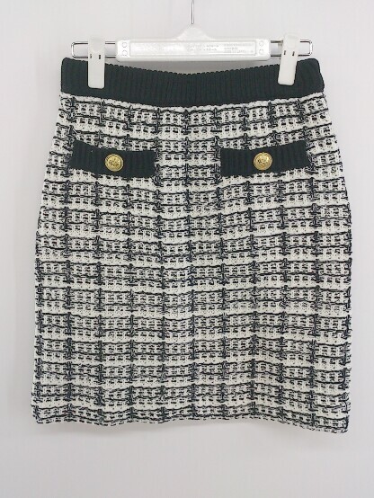 ◇ Heather ヘザー チェック 金ボタン ミニ 台形 ニット スカート サイズF ホワイト ブラック系 レディース P