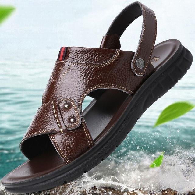 サンダル 本革サンダル メンズ ビーチサンダル ローマブール コンフォートサンダル ワニ柄 可動式ストラップ 2WAY ブラウン 26.5cm