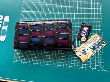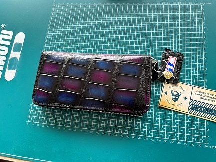 QB-1-33実物撮影 職人手作り手染 希少 限定 腹革 人工養殖 財布 上質 レア【漂う高級感】アリゲーター・ファスナー長財布 クロコ 本革