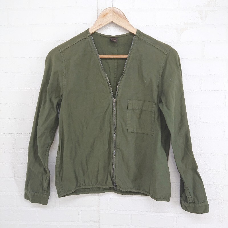 ◇ URBAN RESEARCH DOORS ノーカラー ジップアップ 長袖 ジャケット サイズONE カーキ系 レディース P