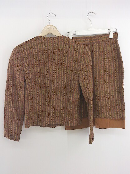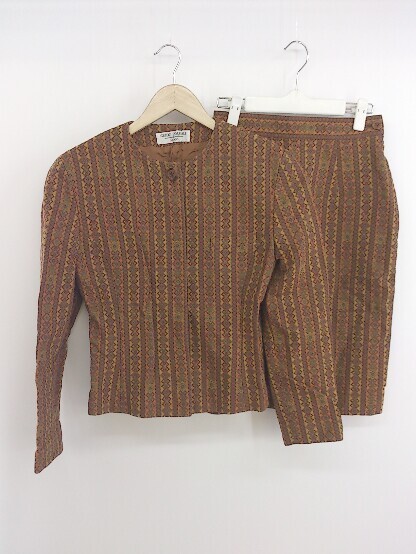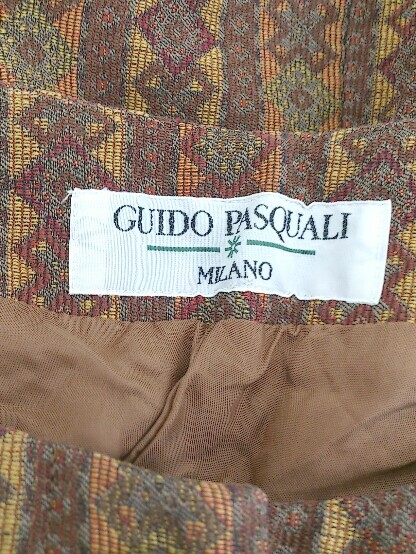 ◇ GUIDO PASQUALI 総柄 肩パッド レトロ 膝丈 スカート スーツ セットアップ サイズ42 オレンジブラウン系 レディース P
