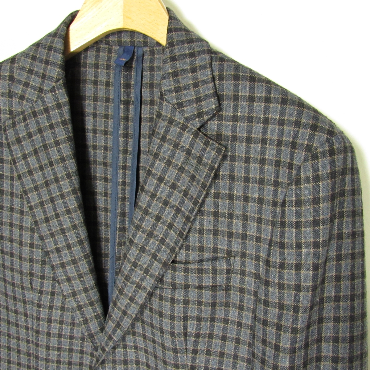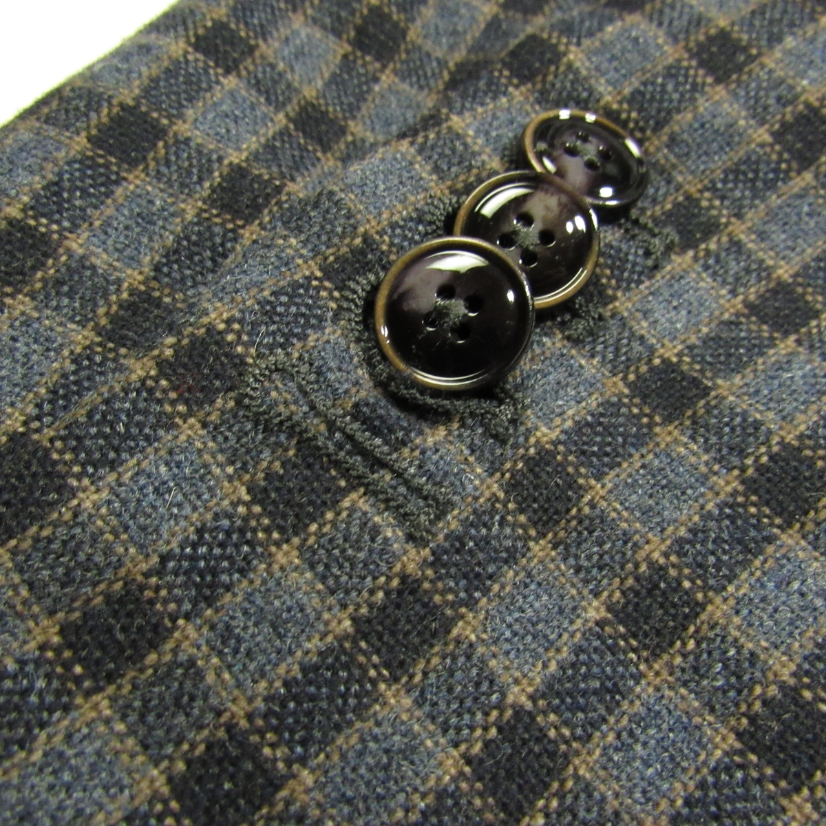 | 表地-ウール60% ポリエステル40% / 裏地-アセテート50% ビスコース50% 濃淡ネイビー系とライトブラウンのチェック柄 |