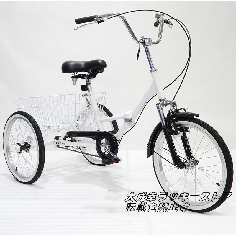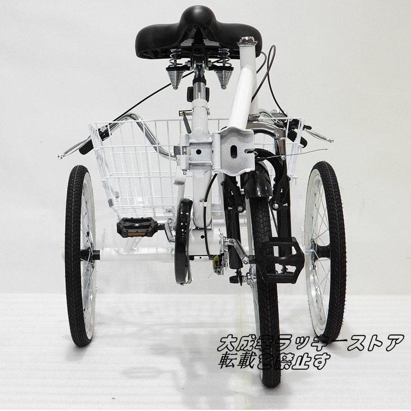お見逃しなく!20インチ 折り畳み式 三輪自転車 高齢者用 リ座席高さ調節可能 大人用 3輪自転車 ホワイト 124