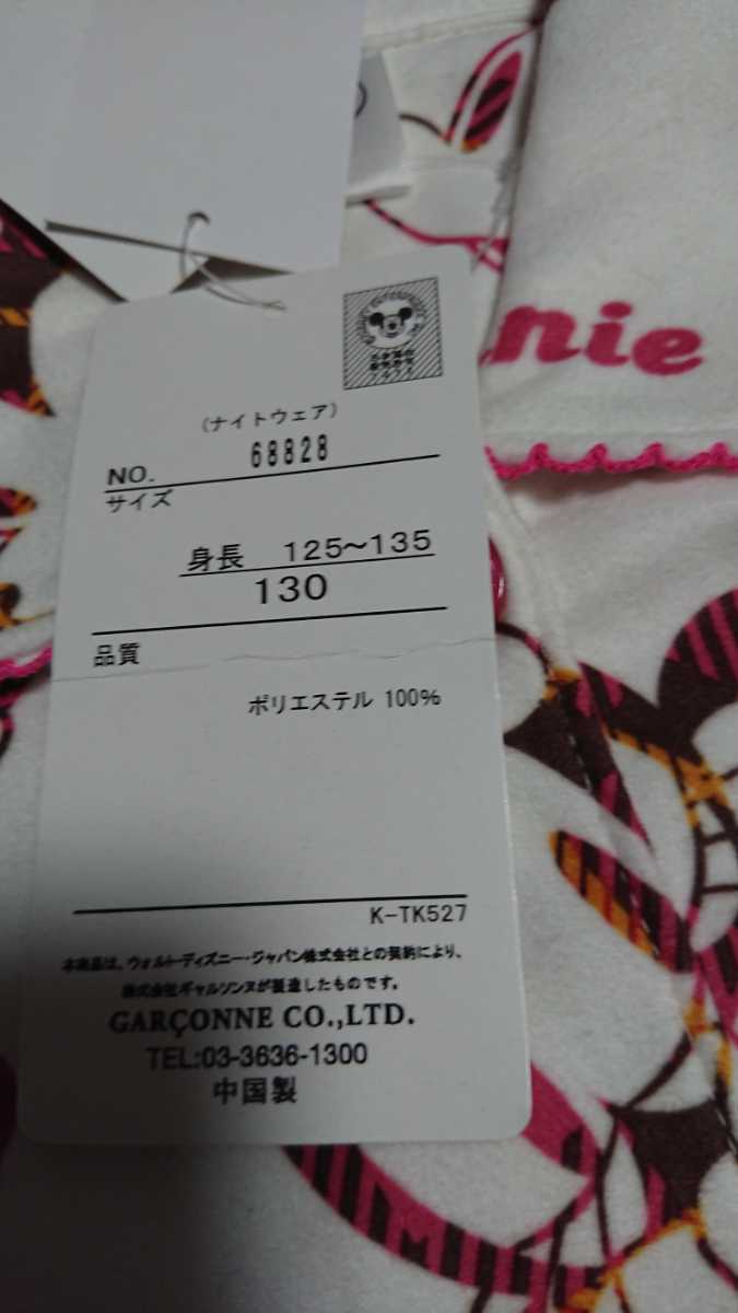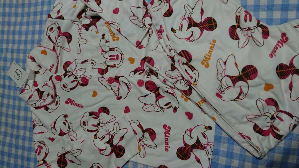 〇0930☆未使用・保管品☆DISNEY☆ミニー総柄前開きパジャマ 白130