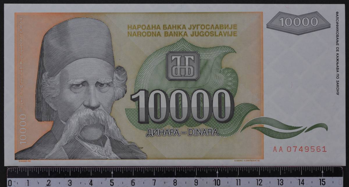 外国紙幣 ユーゴスラヴィア 1993年 未使用 10000ディナラ