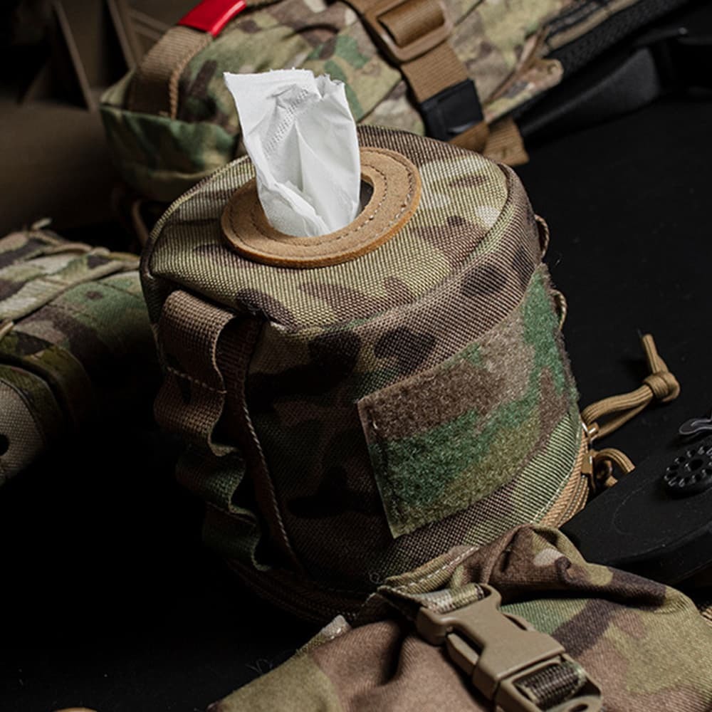 生地の500Dナイロンは汚れや湿気に強く、内部のトイレットペーパーをしっかり保護。