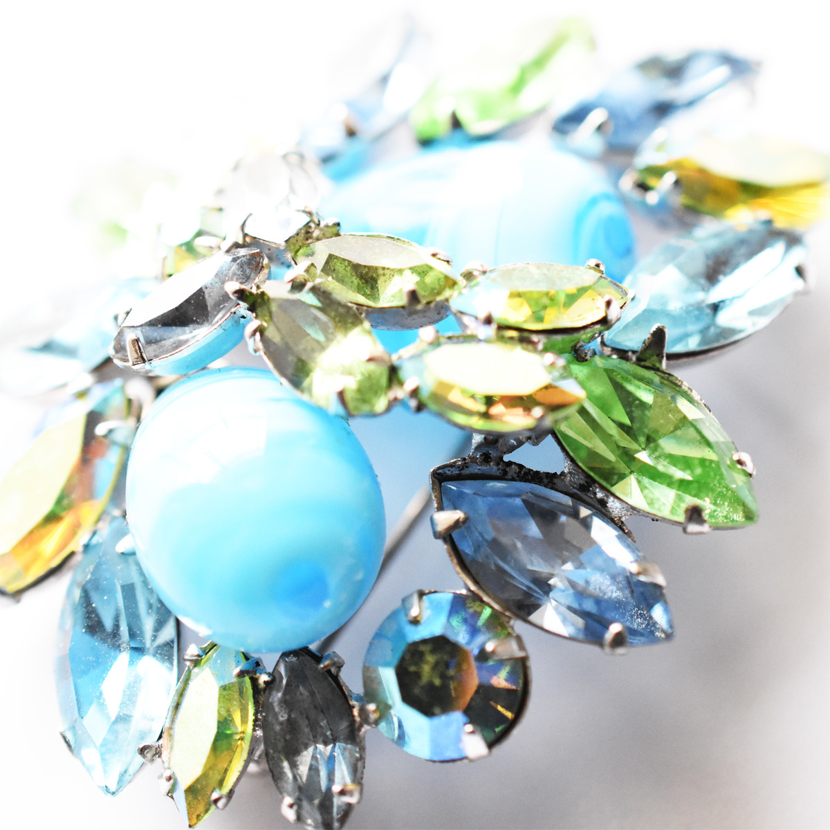 ・ブローチ表面のラインストーン・ガラスパーツに経年による若干のキズ・スレ・くすみ等見受けられます。