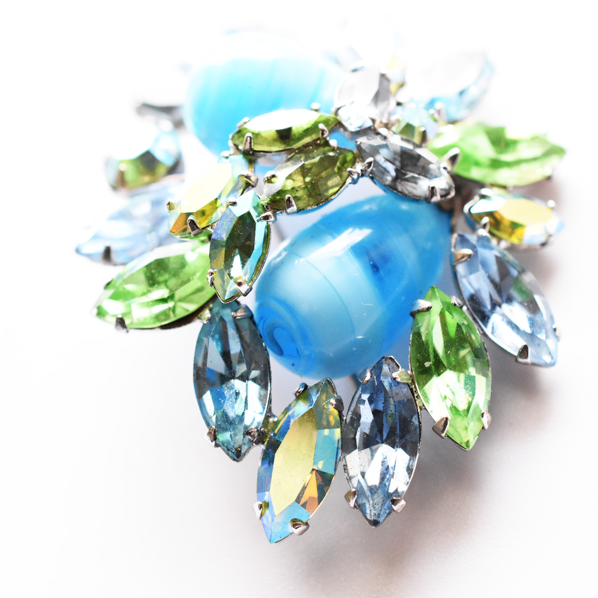 大ぶりのグリーンとブルーの美しいラインストーンをふんだんに使用し、