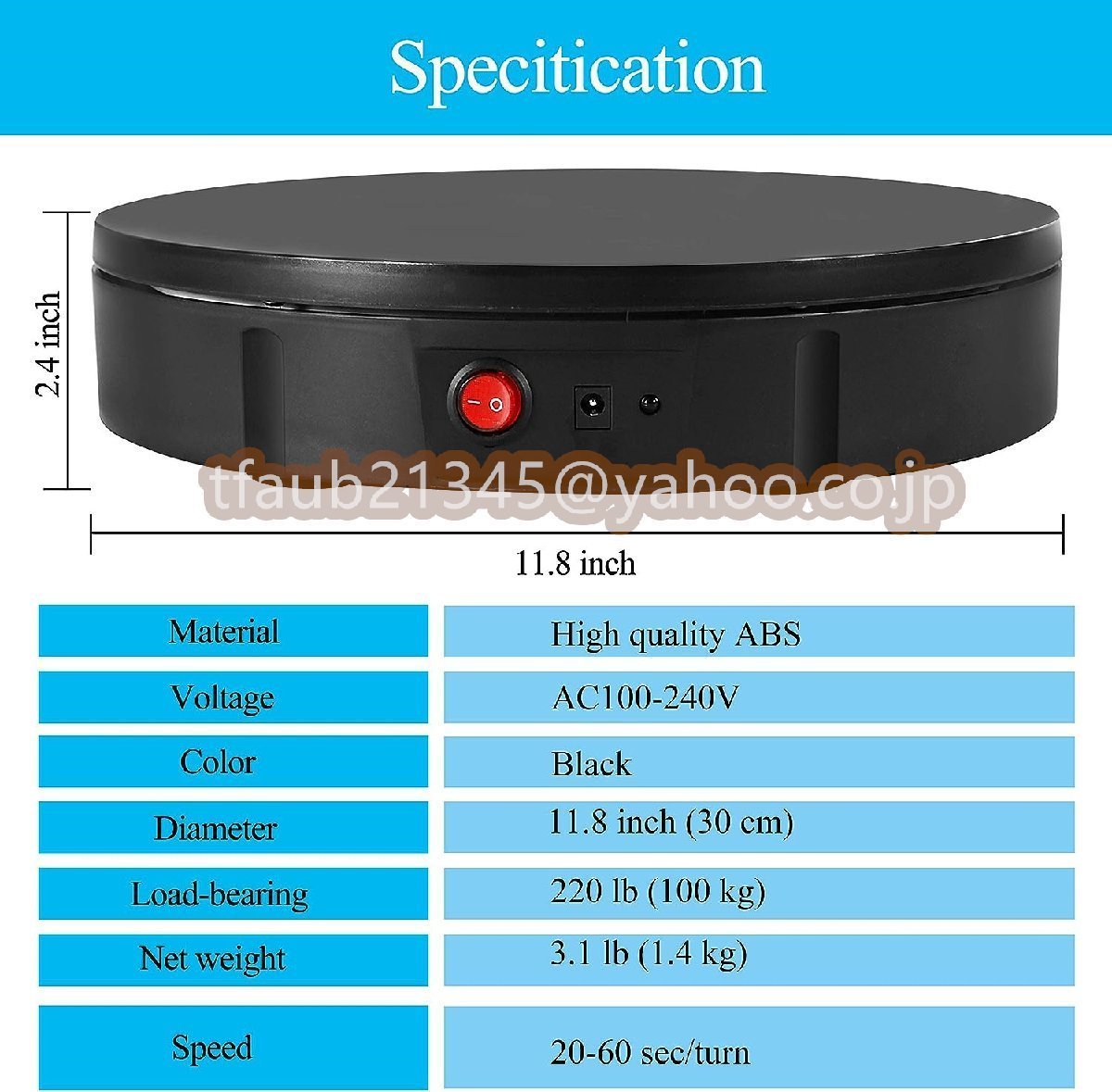 電気ターンテーブル360度電動回転ディスプレイスタンドリモコン撮影用ターンテーブル220 Lb(100㎏)大容量11.8インチ(30㎝)