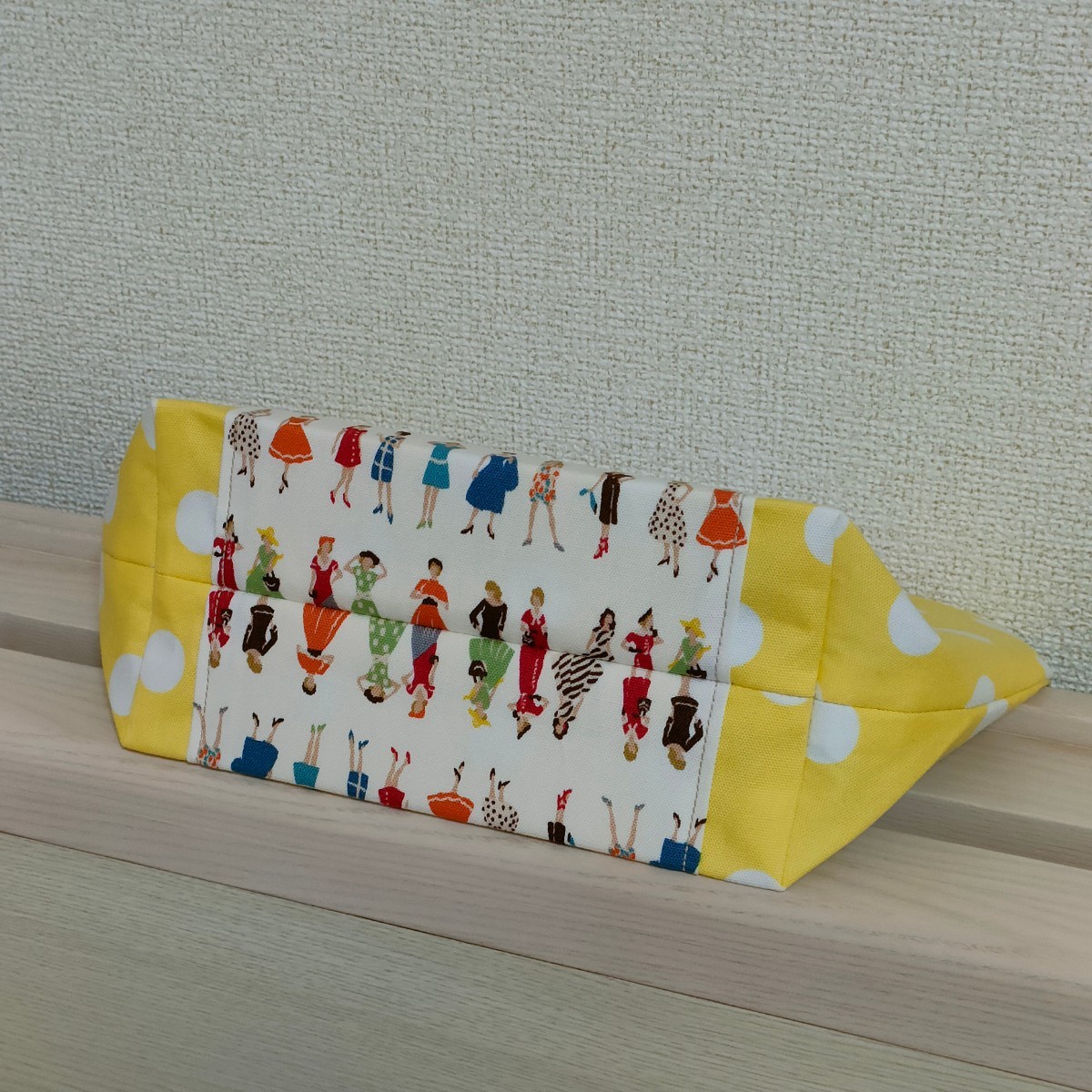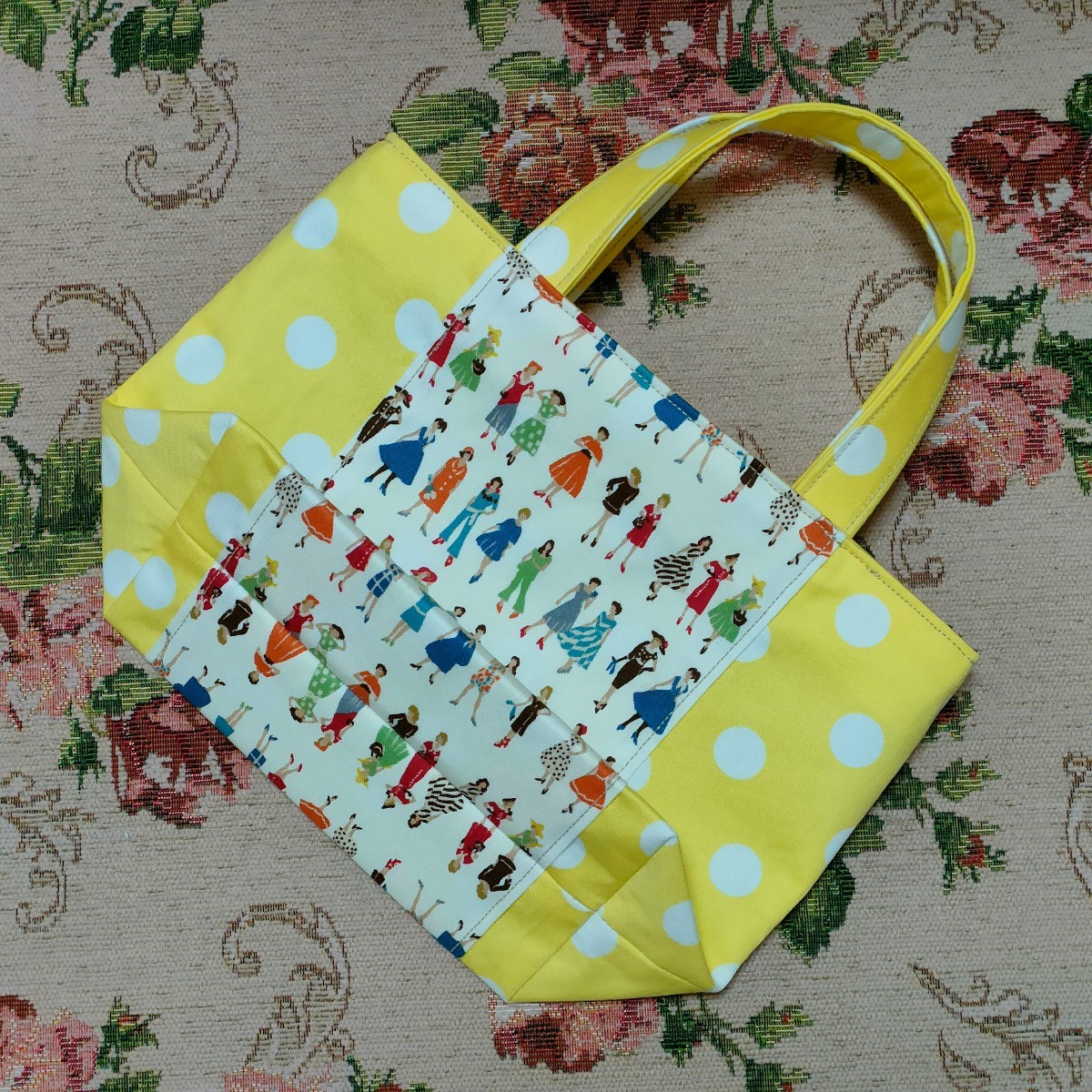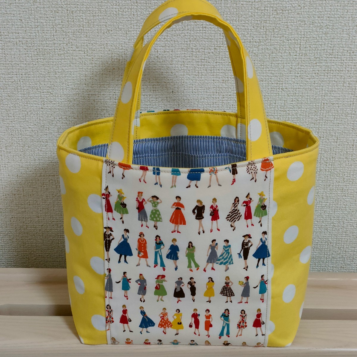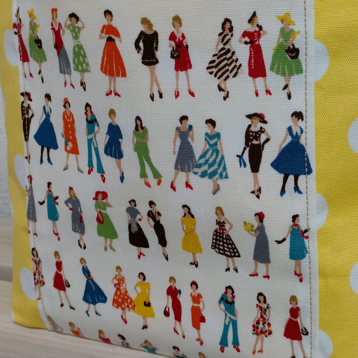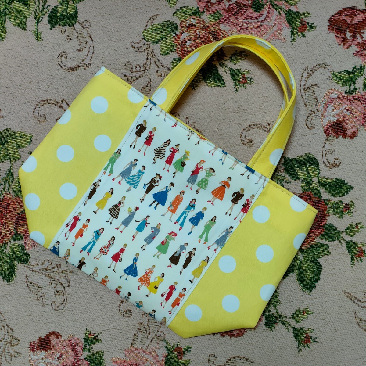 オシャレな洋服を着飾った女性と水玉模様が可愛い生地のミニトートバッグはいかがでしょうか♪