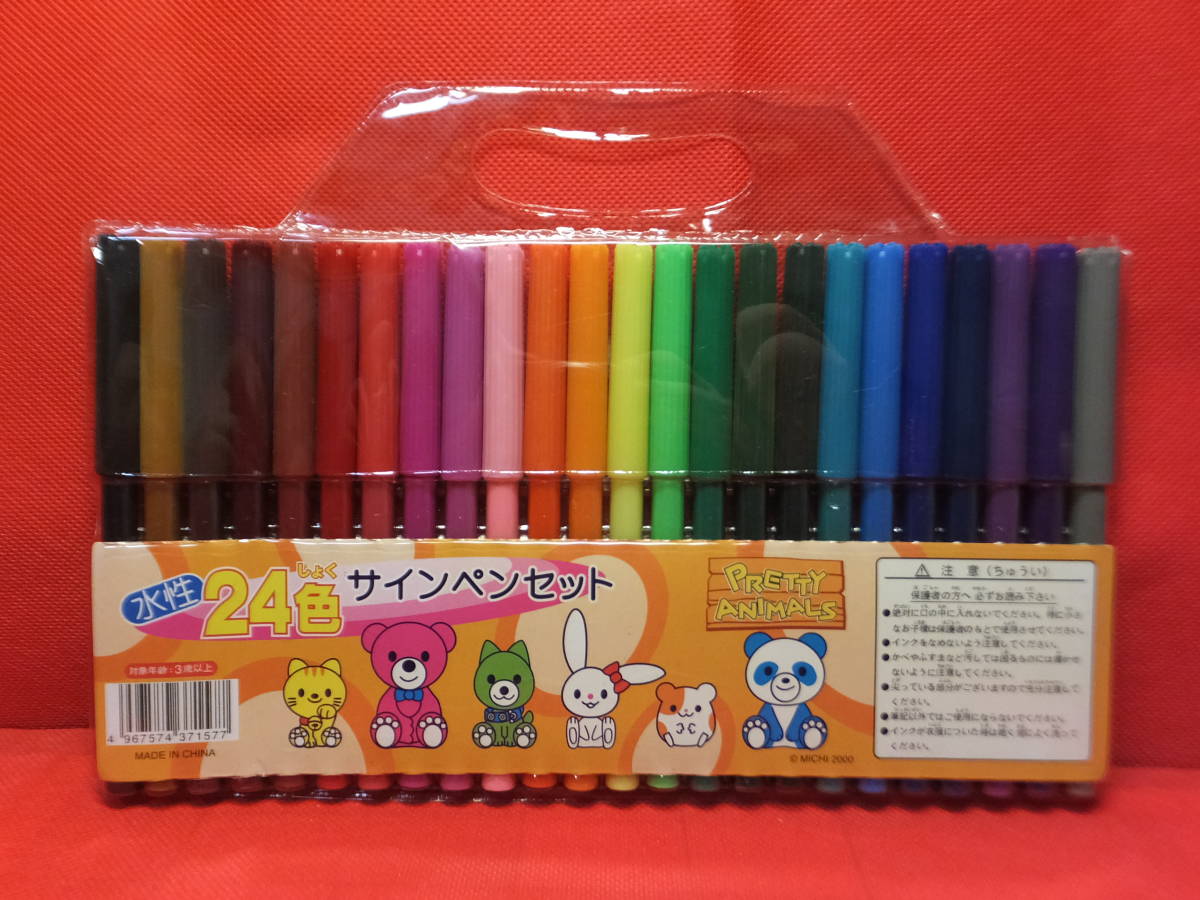 2000年 当時もの MICHI 水性 24色サインペンセット Pretty Animals 未使用 (ジャンク)