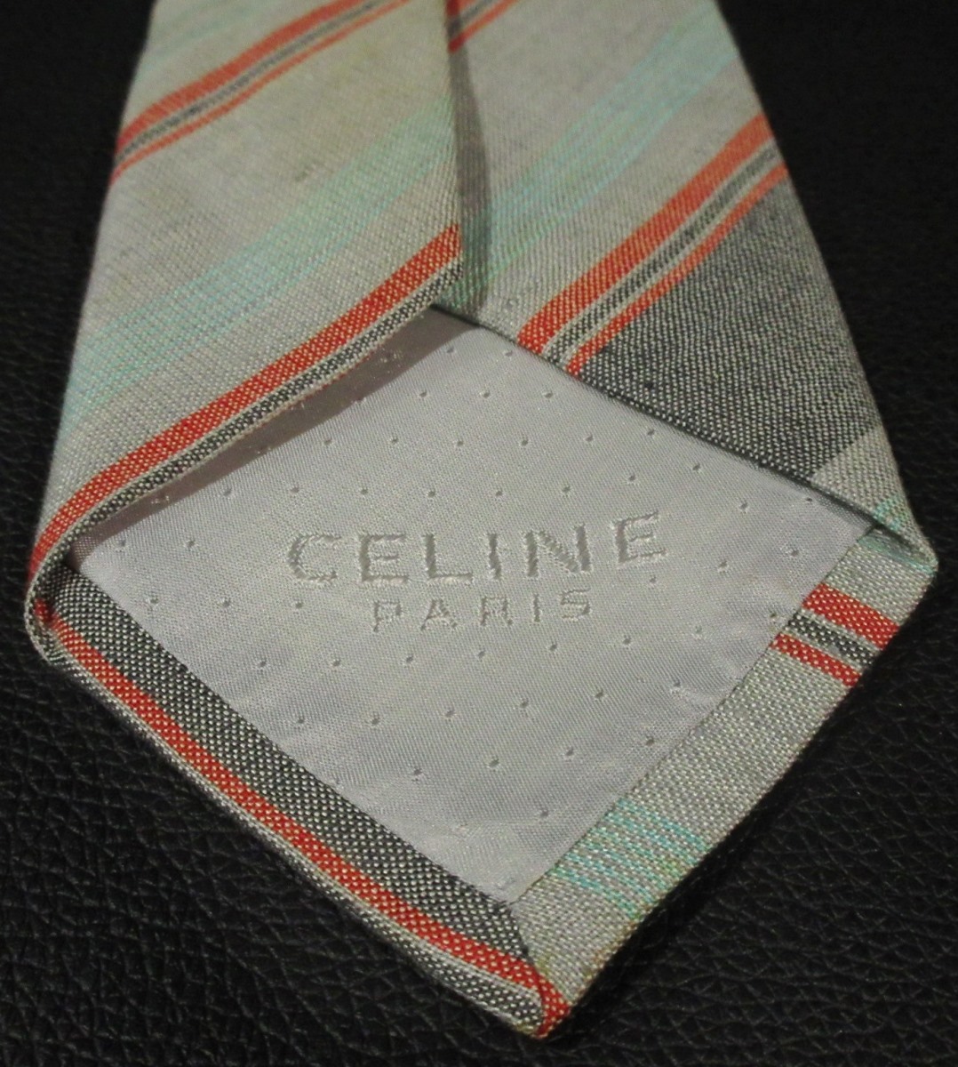 | セリーヌ CELINE PARIS レジメンタルストライプ ロゴ ネクタイ になります。 格安からの売り切りですので、宜しくお願い致します。 |