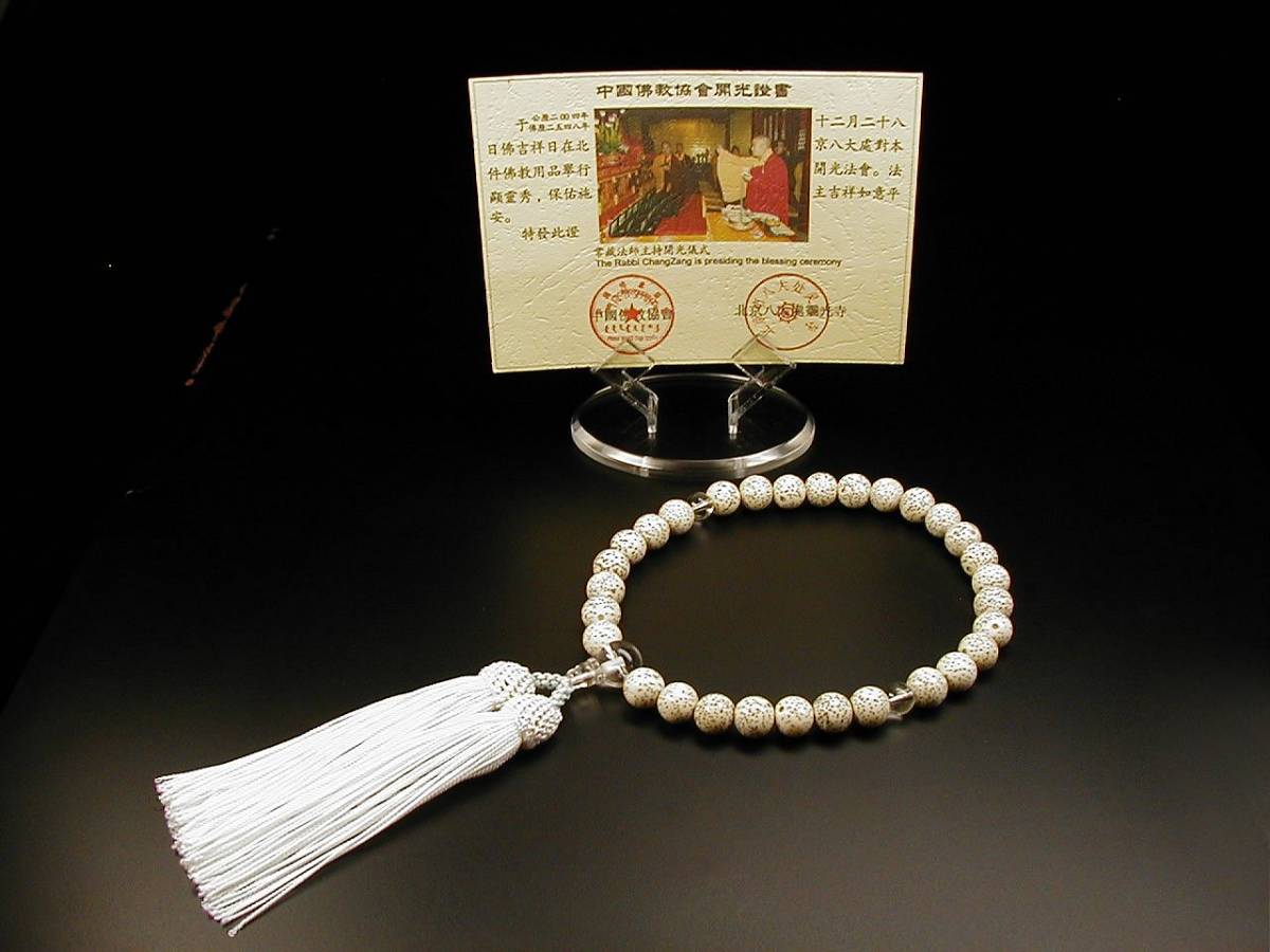 出品の数珠全てに対して、中国仏教協会が発行の開光証書 をお付けできます。ご入用の際には、3,800円 を申し受けます。(その際、落札者が大きいほうの開光証書が必要な場合は、コピーをお付けいたしますので、合わせてお申し出下さい。)宗教信仰の違いにより、不必要な場合は、この代金は結構です。ご自由に選択ください。