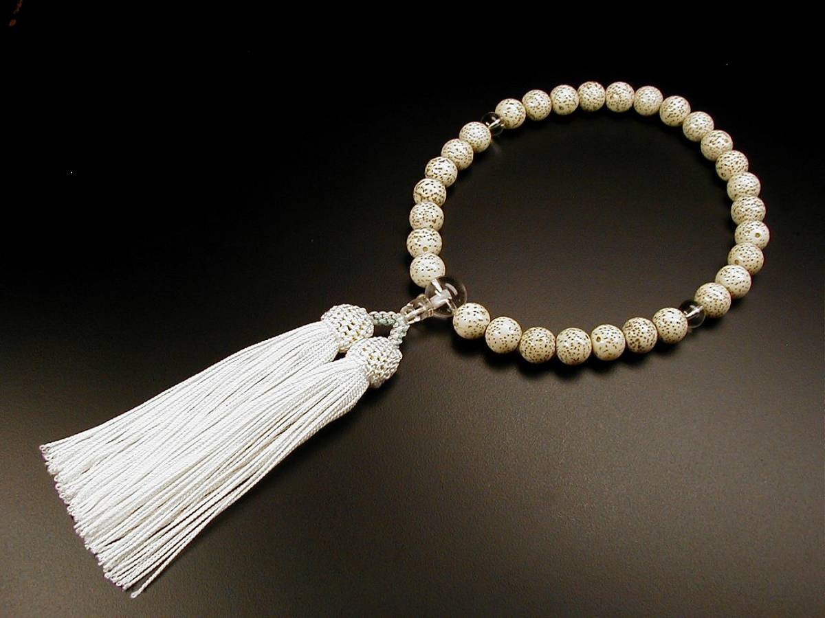 念珠はただ身につけるだけで精神力や潜在能力(法力)を無限に高めてくれると、お経本に記されているとおり、大変意味深い法具で法事や葬儀のときに持つのも故人の冥福を祈る心を増幅するためです。普段の生活の中でも法力が発揮されます。