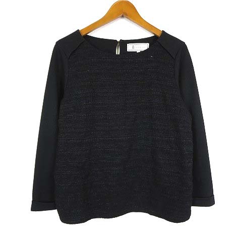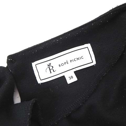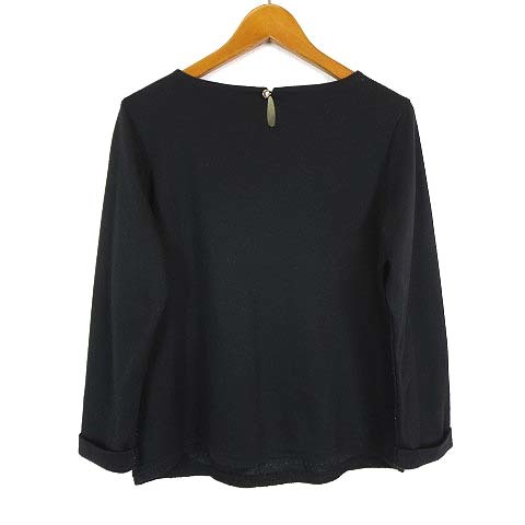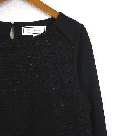 ロペピクニック ROPE Picnic カットソー ブラウス ジャガード ラメ ボーダー 異素材 切り替え ロールアップ 7分袖 M 38 黒 ブラック