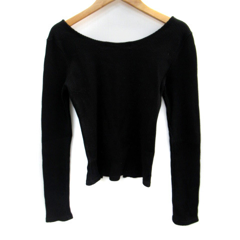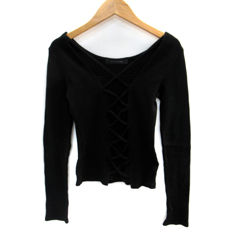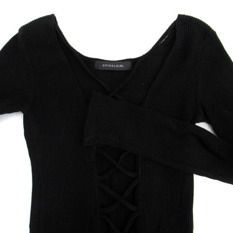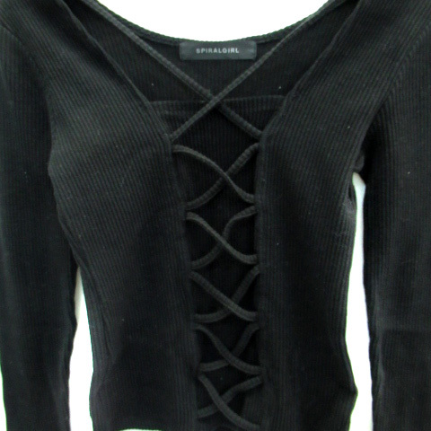 スパイラルガール SPIRALGIRL カットソー 長袖 スクエアネック リブ レースアップ F 黒 ブラック /SM5 レディース