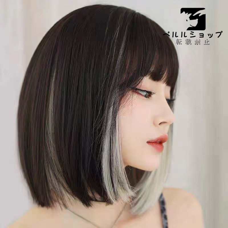 ウィッグ ショート ボブ 小顔 かつら カツラ 女装 ボブ フルウイッグ 前髪 フルウイッグ グラデーション ショート