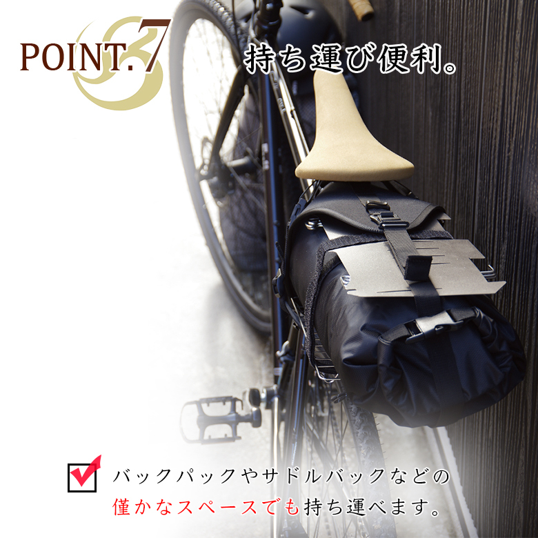 ・バックパックやサドルバックなどの僅かなスペースでも持ち運べます。